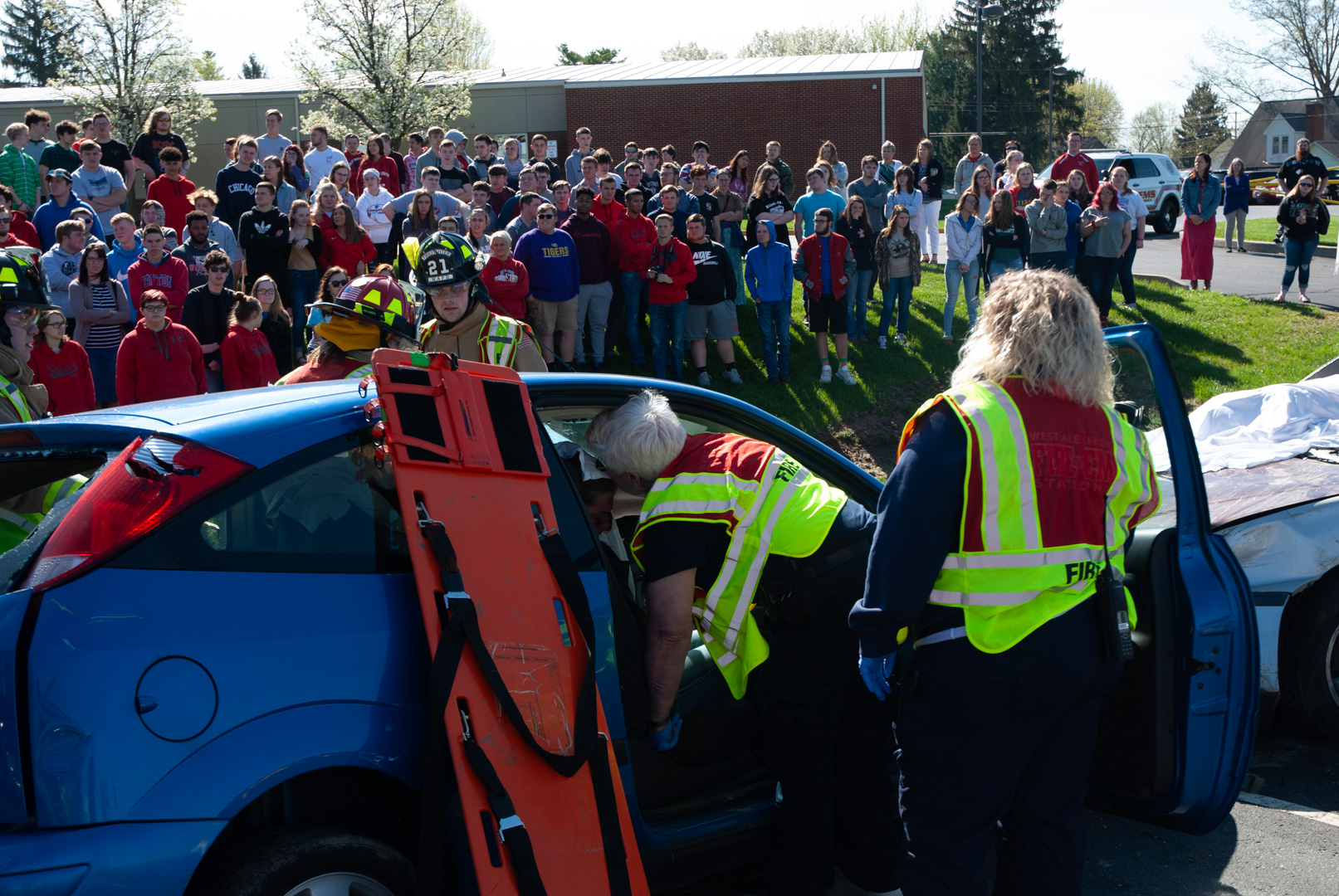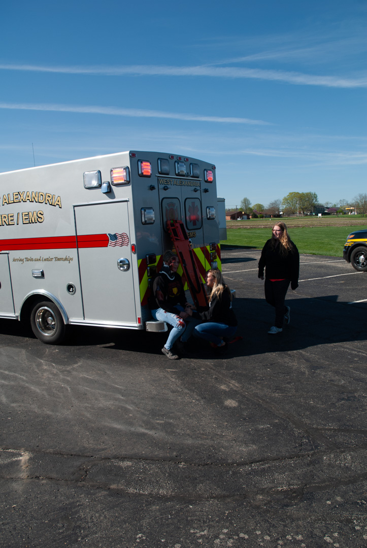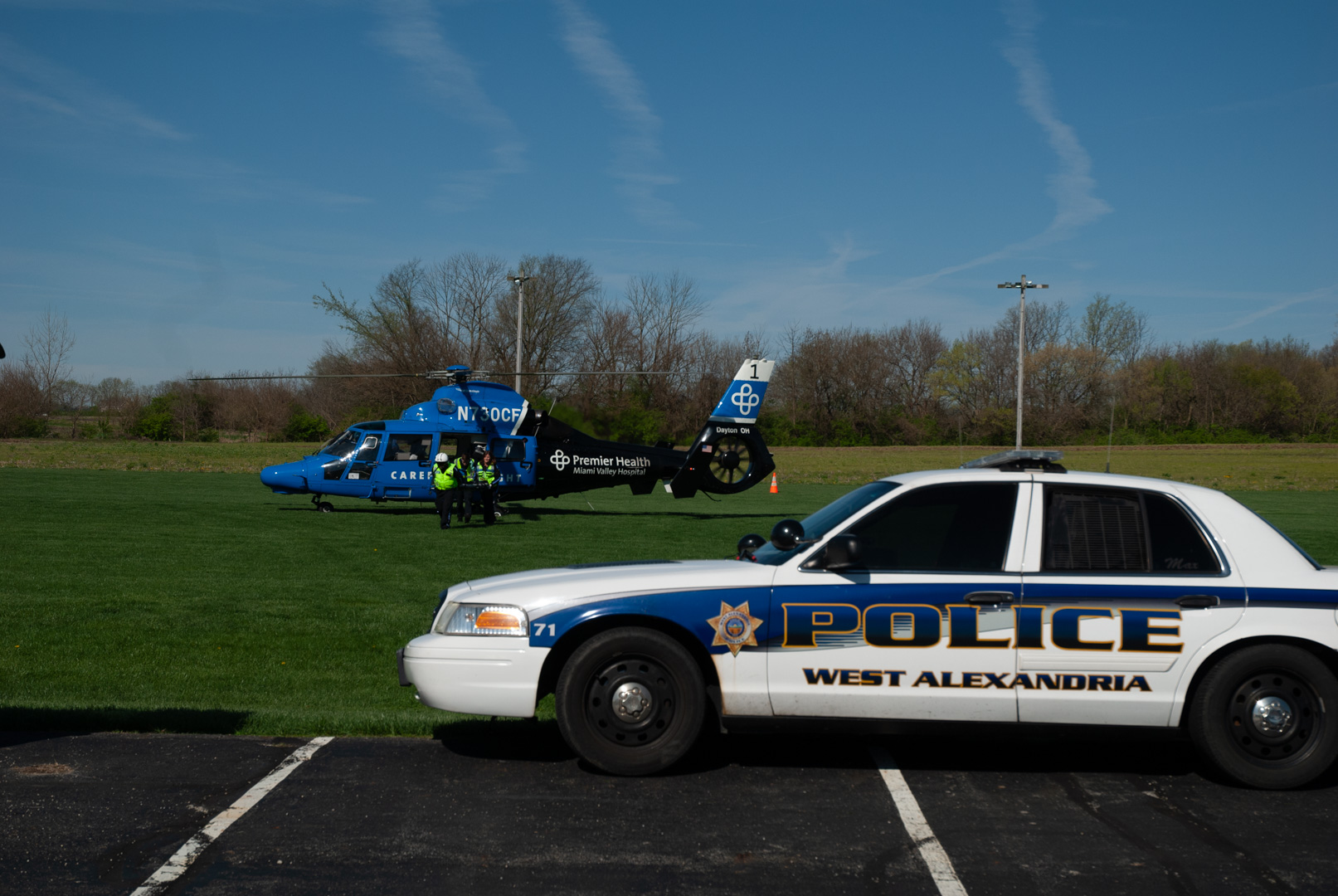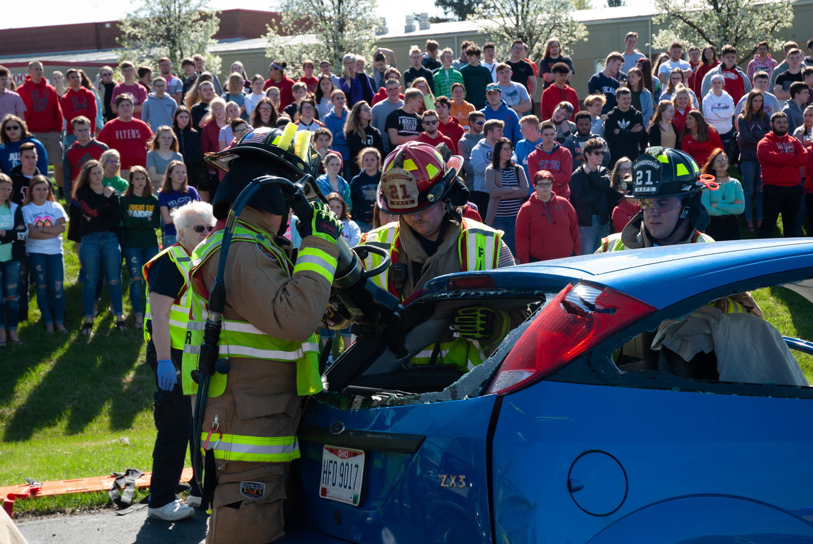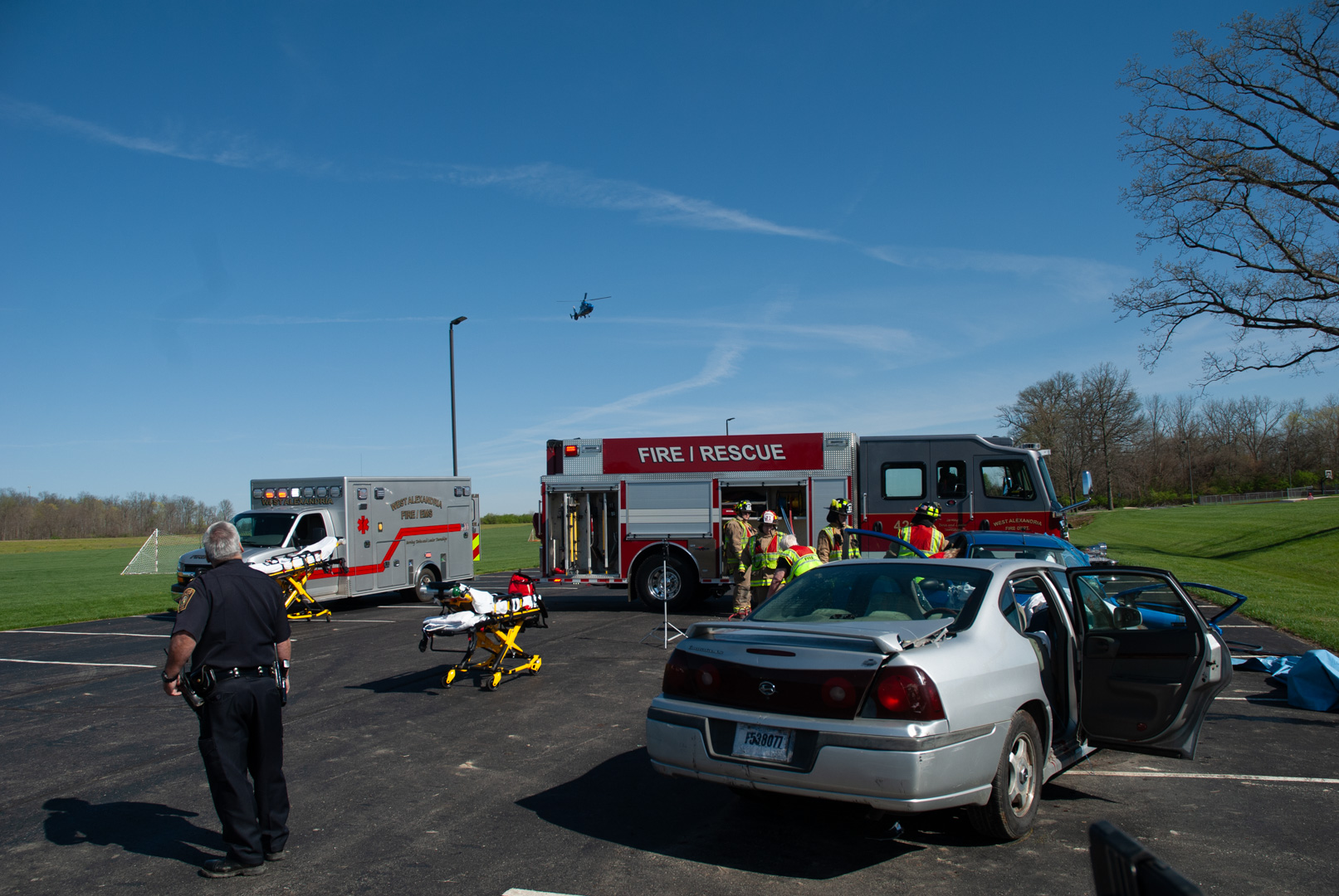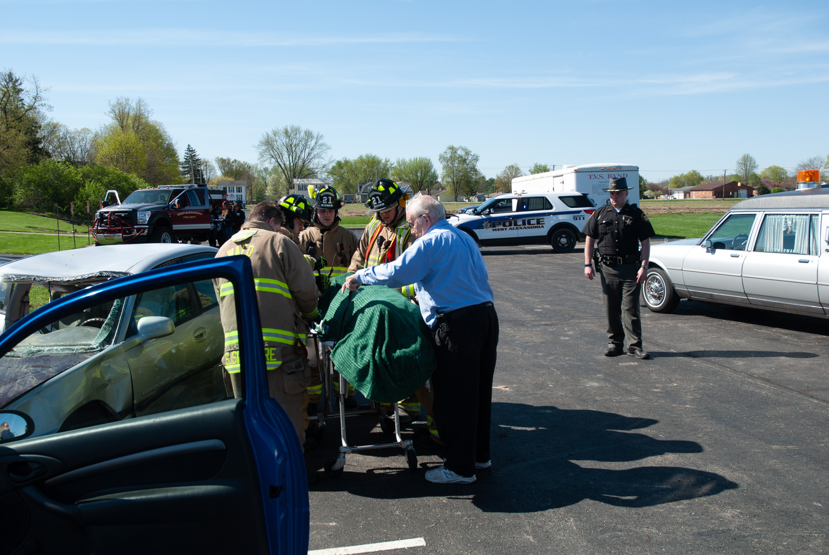 Members of West Alexandria Fire and EMS, joined by Careflight, put on a "mock crash" for the students of Twin Valley High School to try to deter any prom night drinking and driving. April 22, 2019