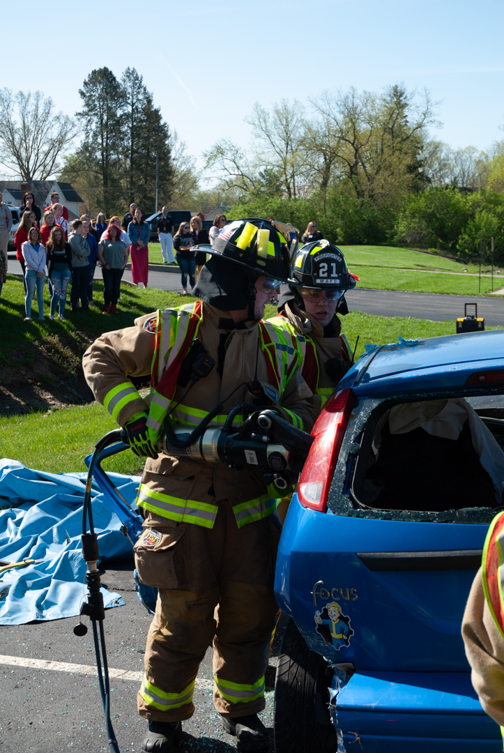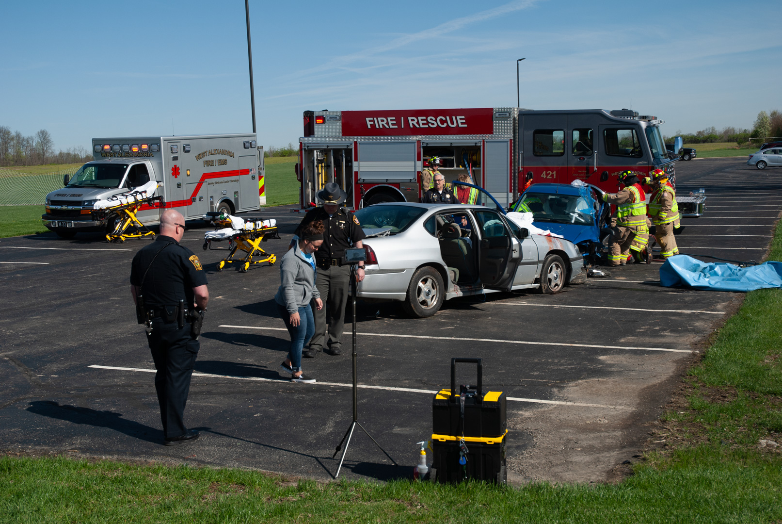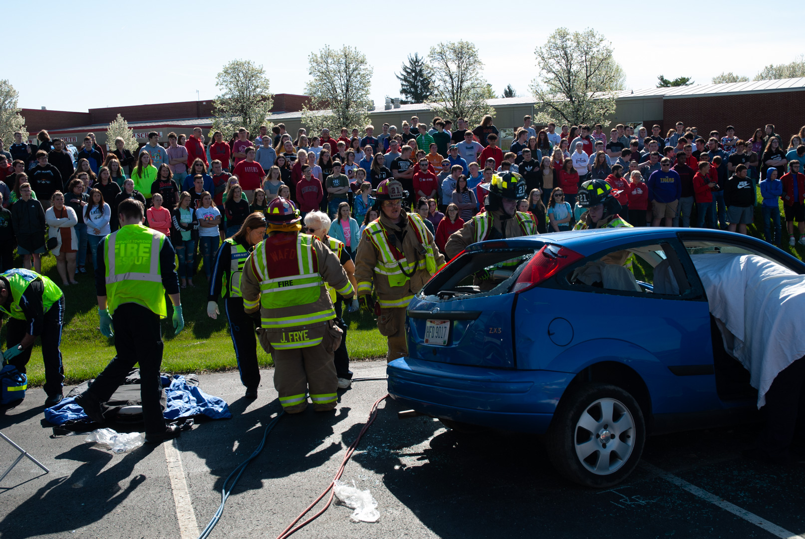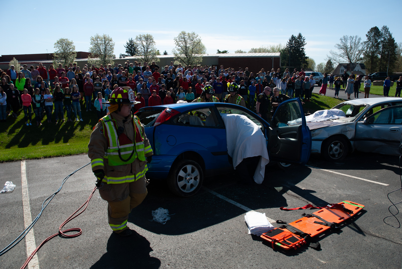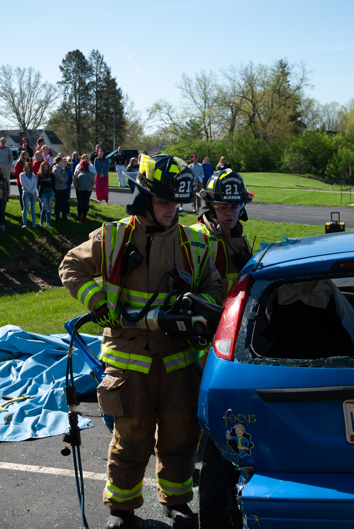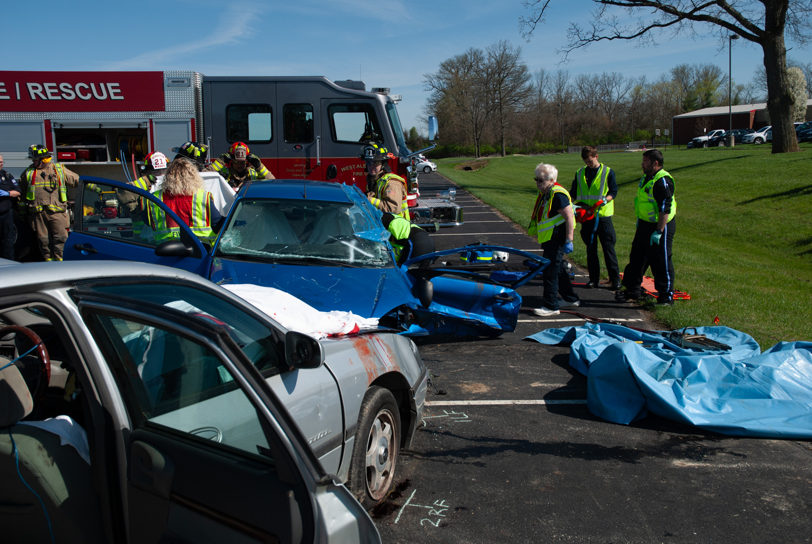 Members of West Alexandria Fire and EMS, joined by Careflight, put on a "mock crash" for the students of Twin Valley High School to try to deter any prom night drinking and driving. April 22, 2019