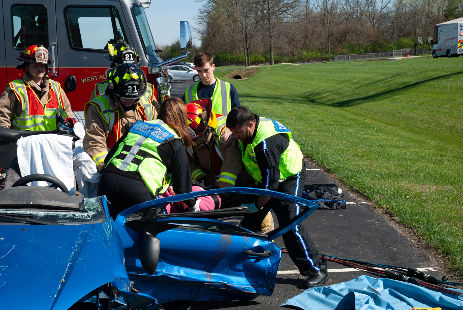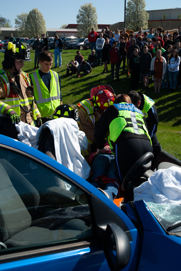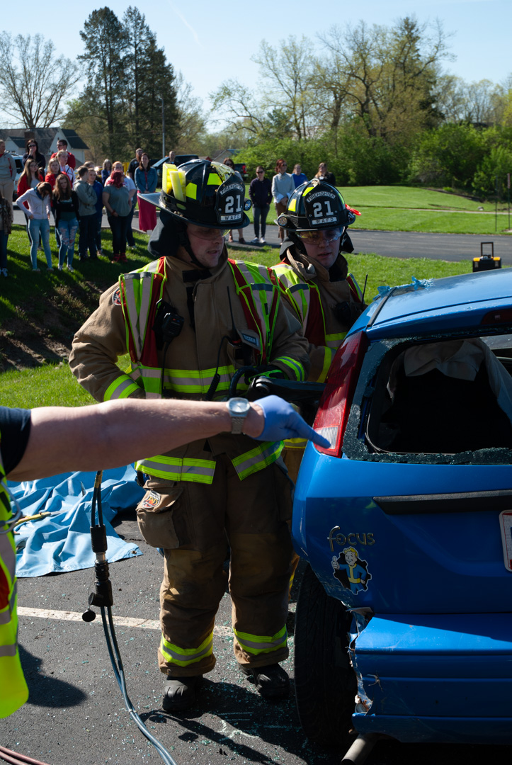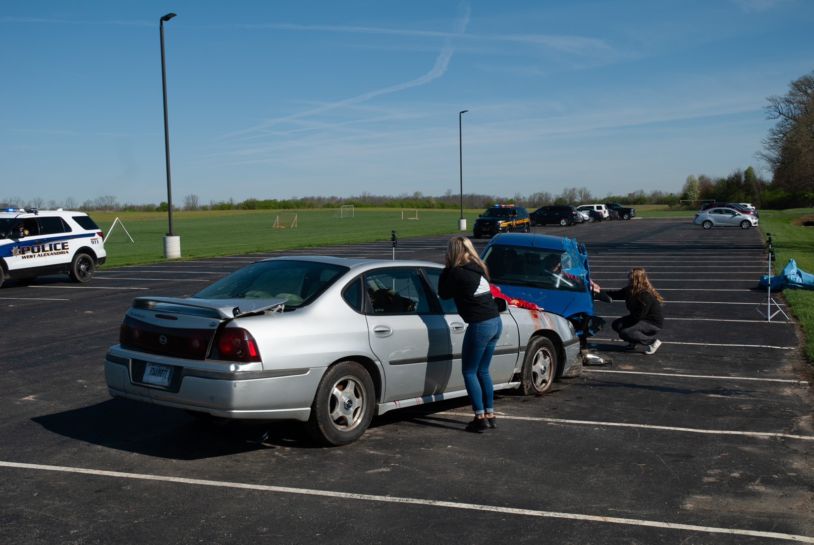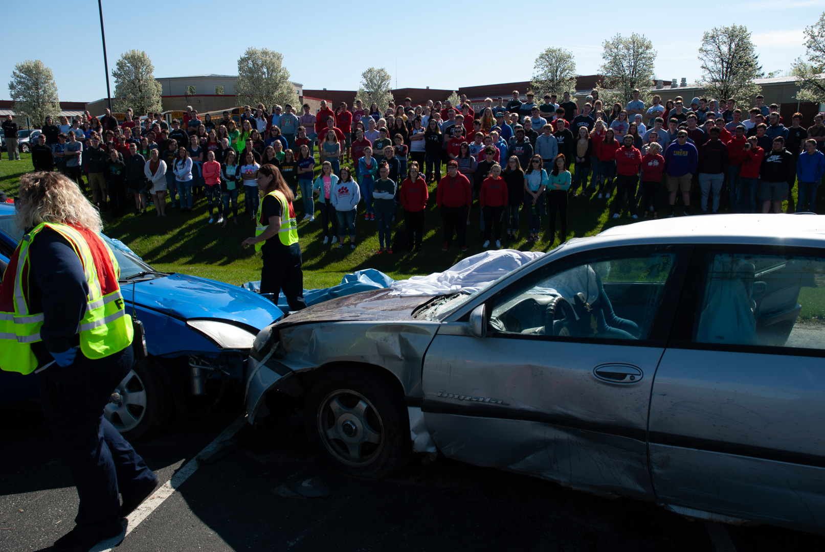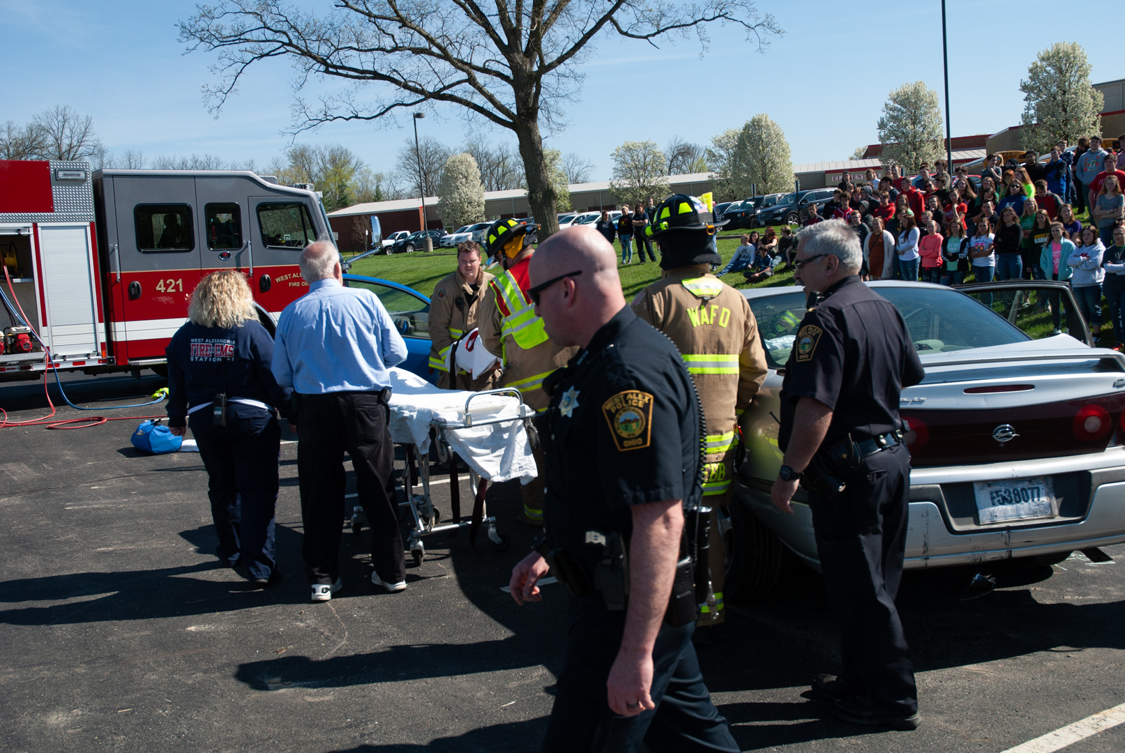 Members of West Alexandria Fire and EMS, joined by Careflight, put on a "mock crash" for the students of Twin Valley High School to try to deter any prom night drinking and driving. April 22, 2019