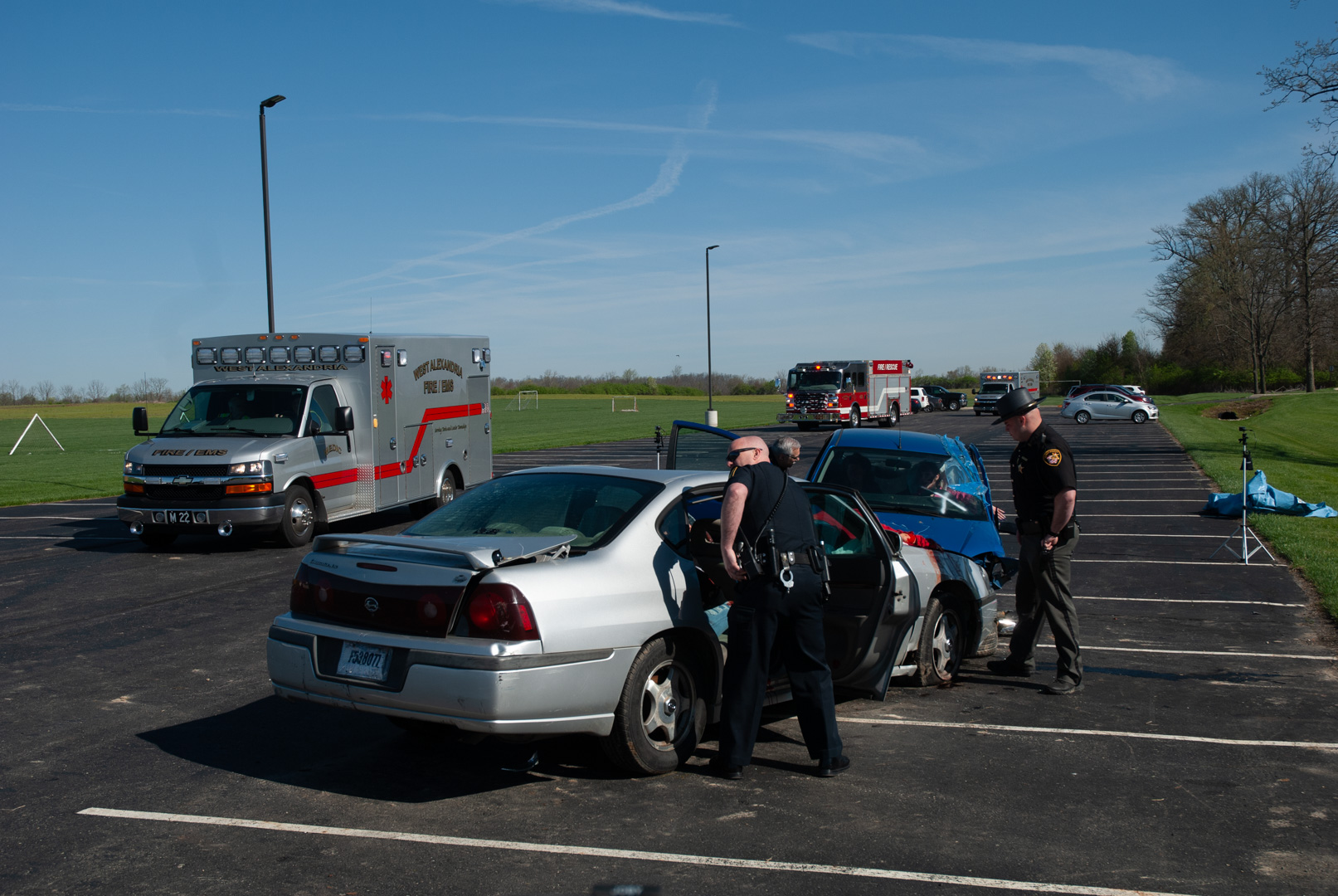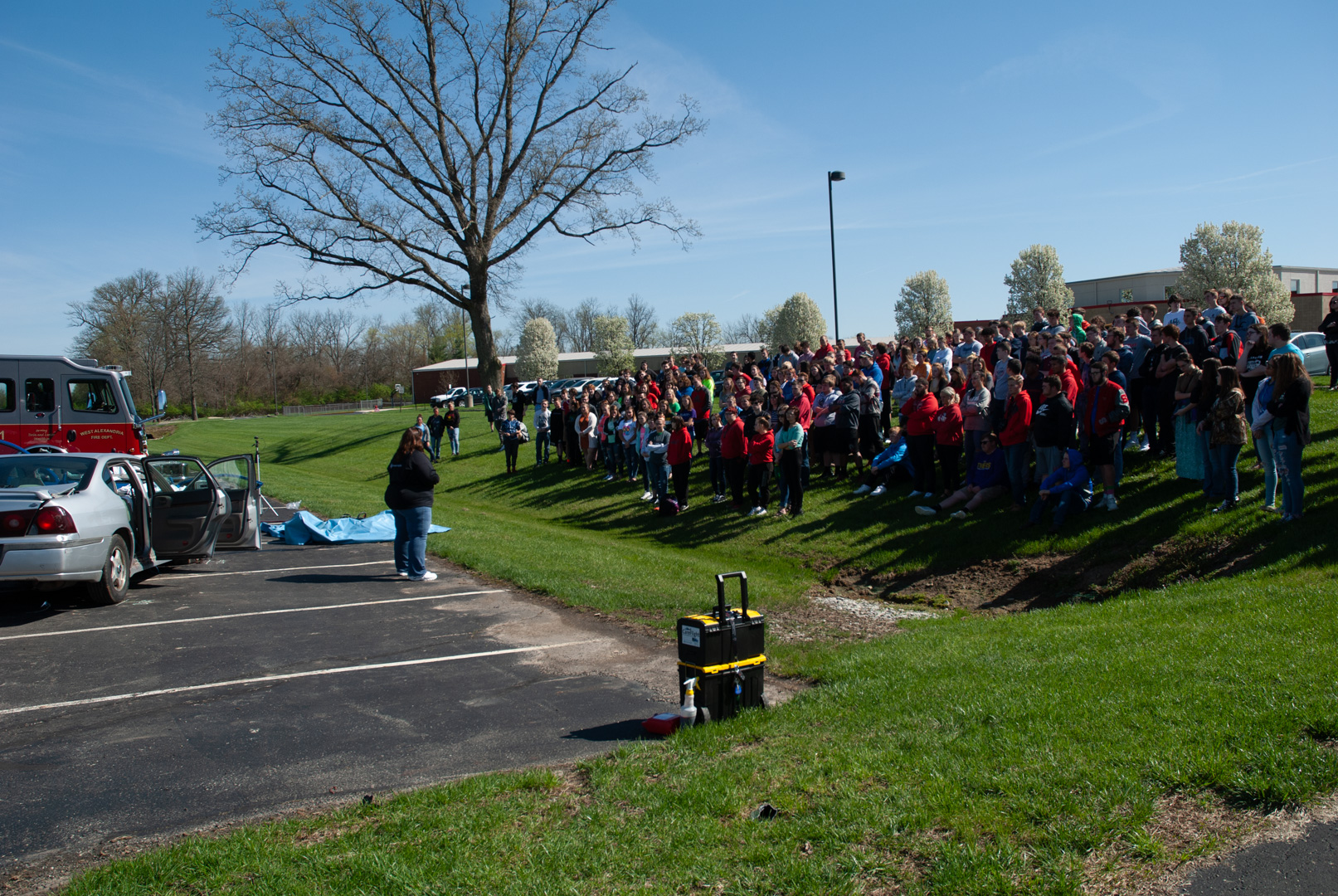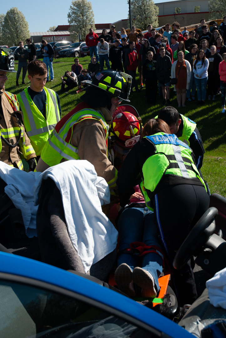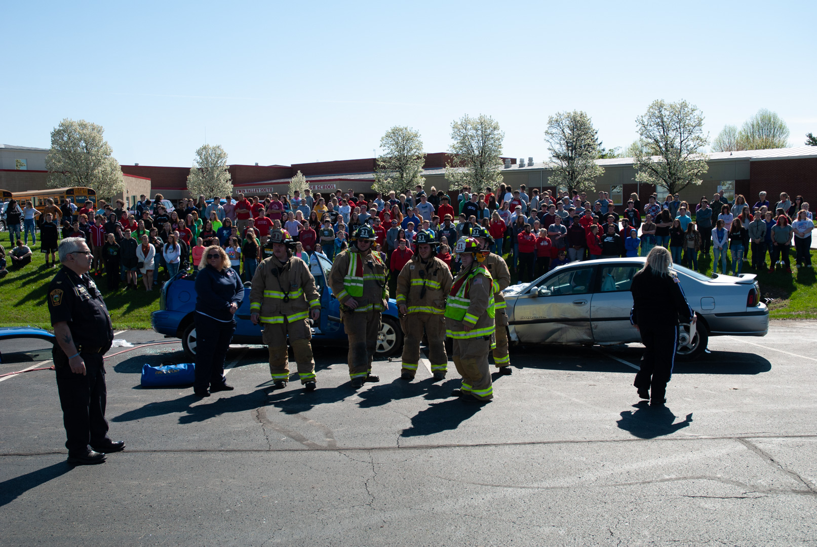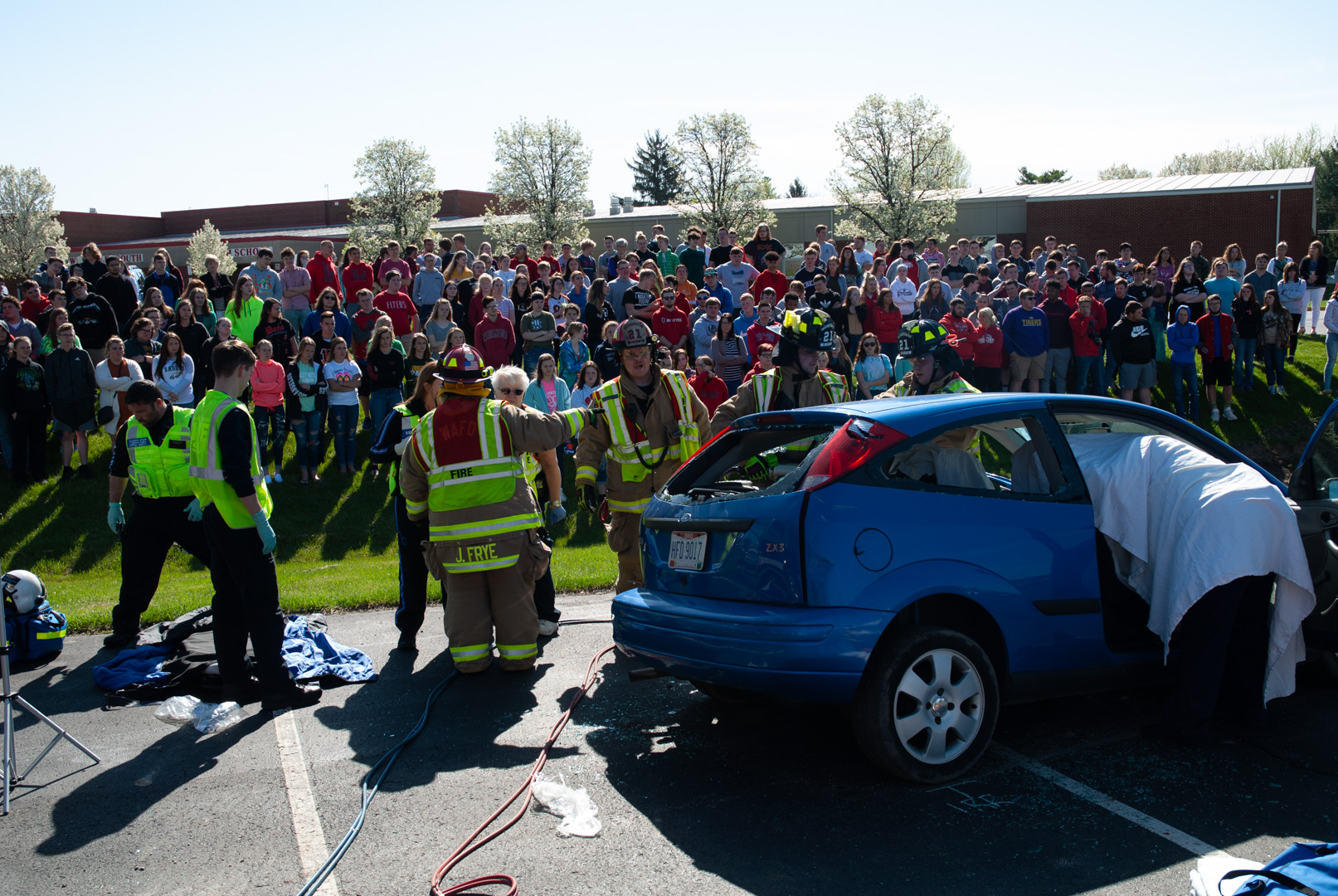 Members of West Alexandria Fire and EMS, joined by Careflight, put on a "mock crash" for the students of Twin Valley High School to try to deter any prom night drinking and driving. April 22, 2019