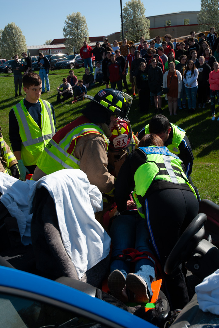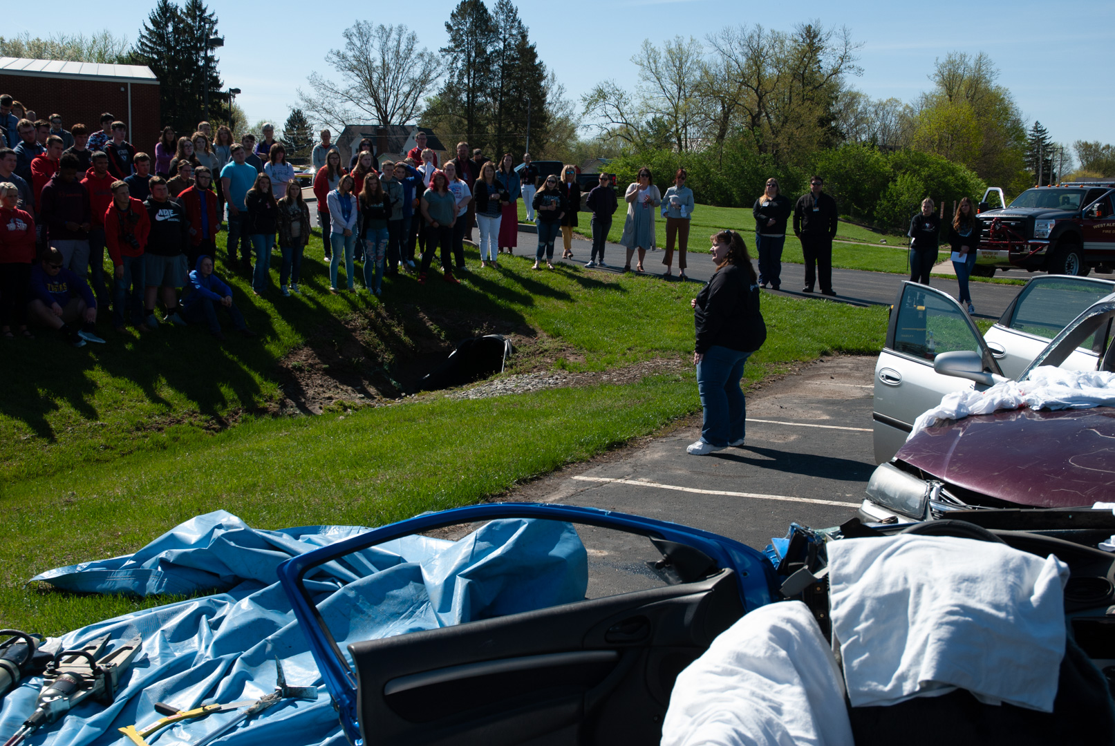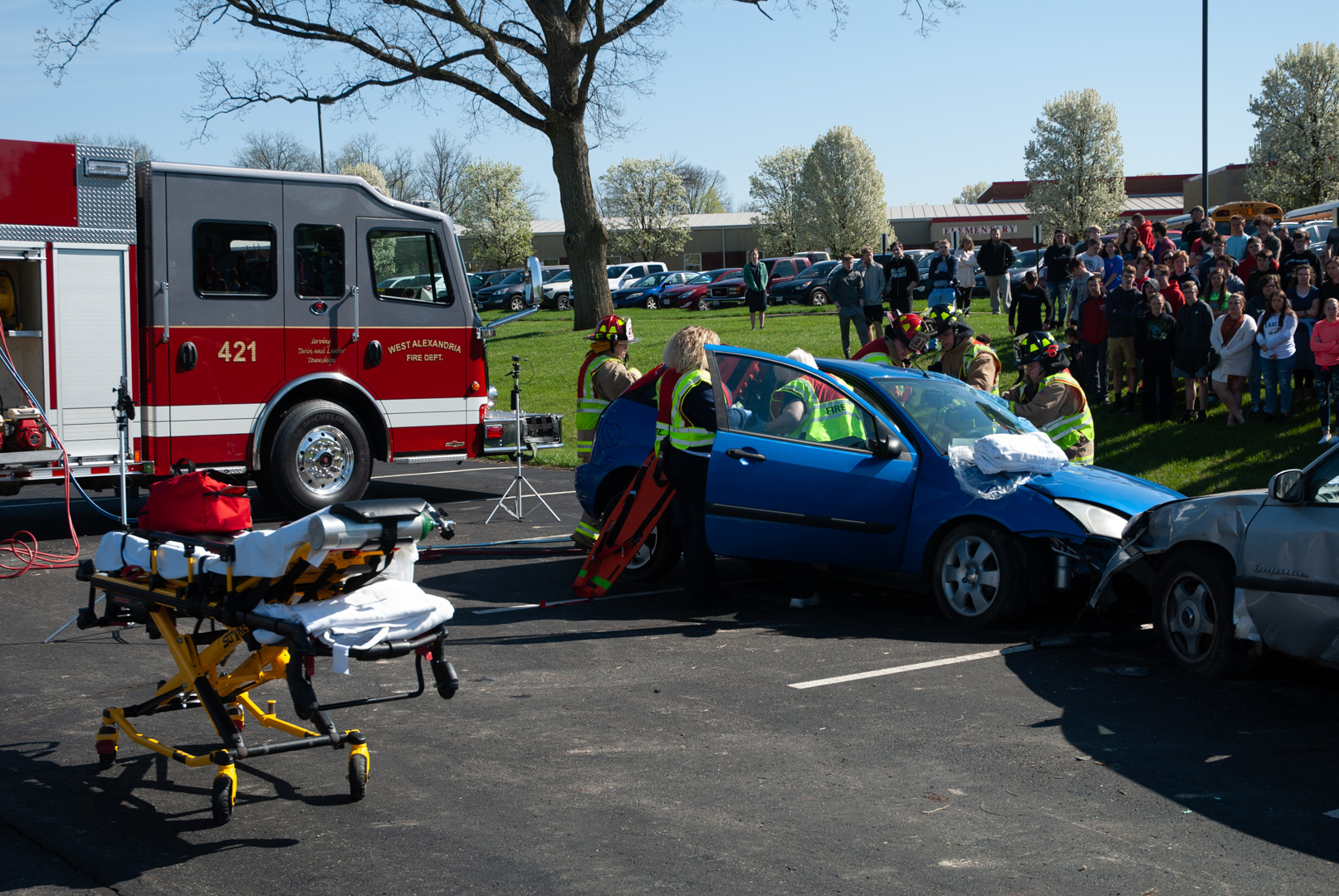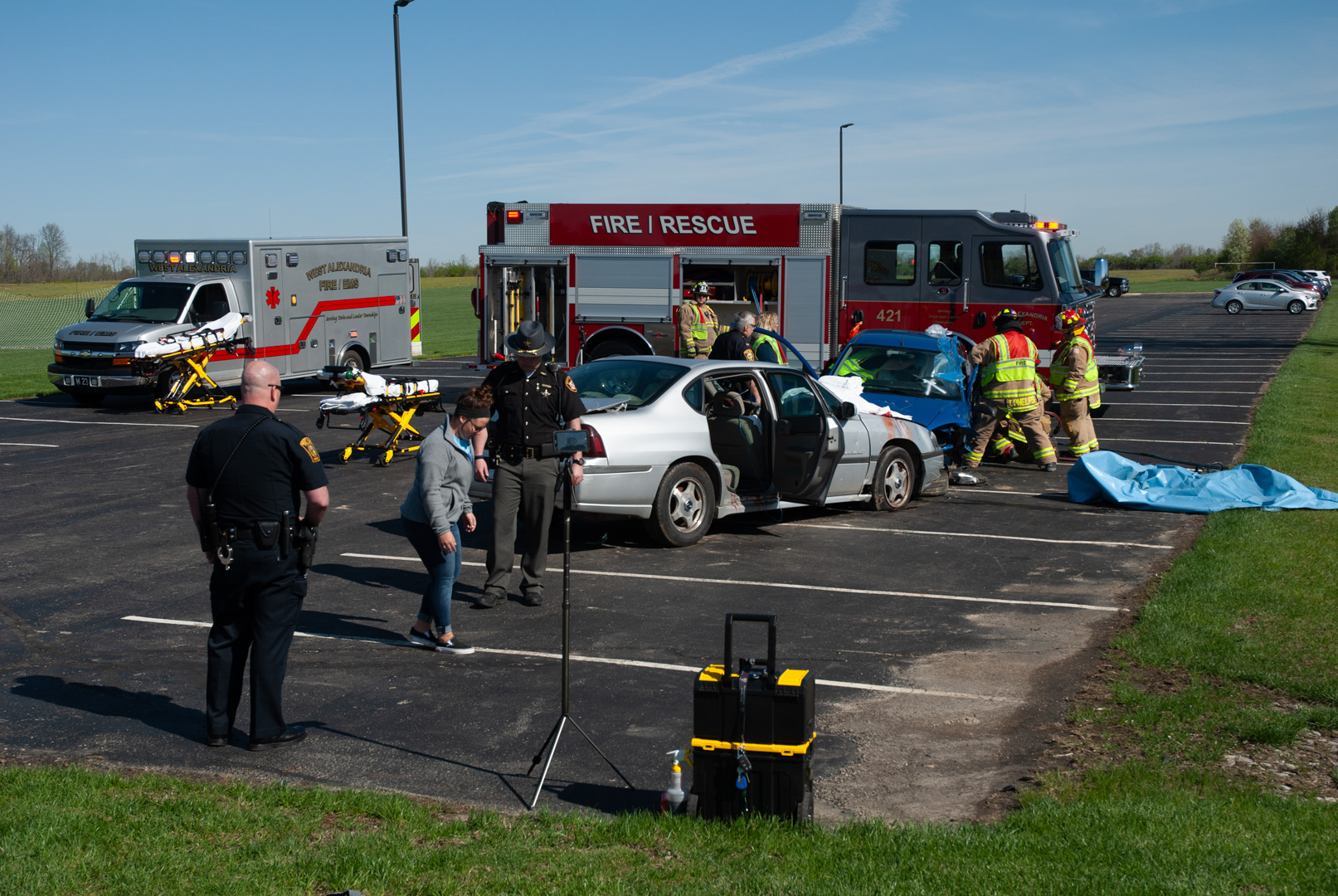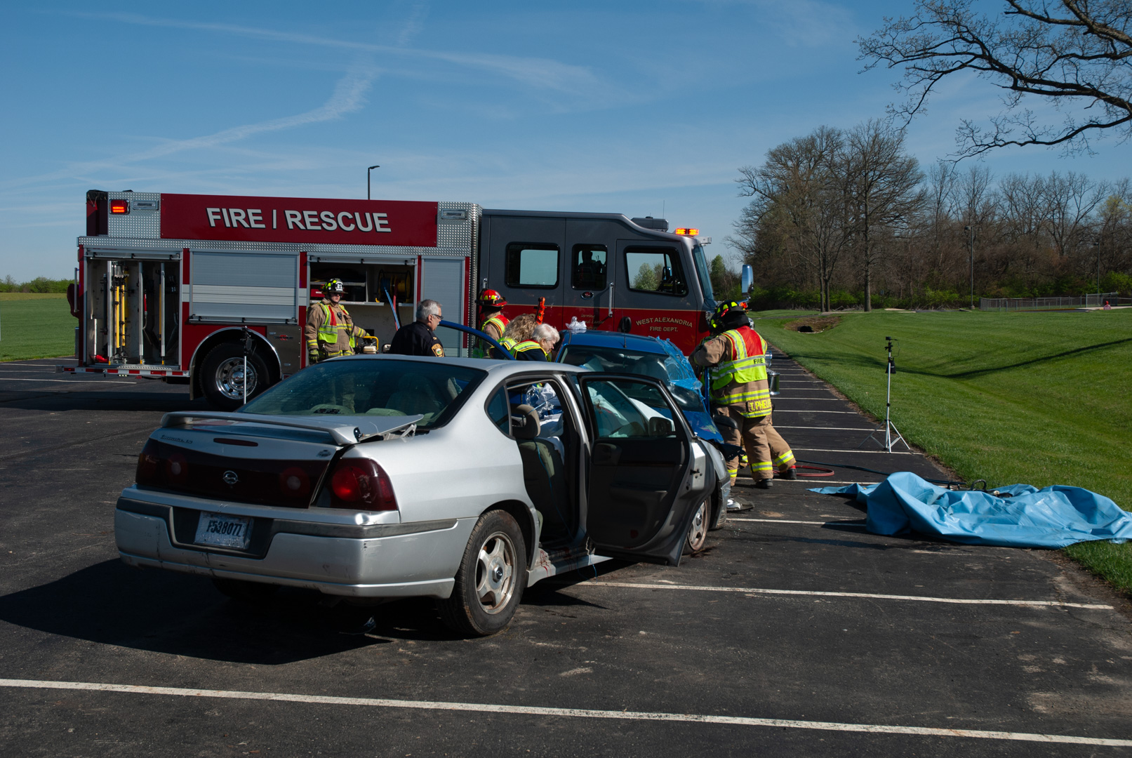 Members of West Alexandria Fire and EMS, joined by Careflight, put on a "mock crash" for the students of Twin Valley High School to try to deter any prom night drinking and driving. April 22, 2019