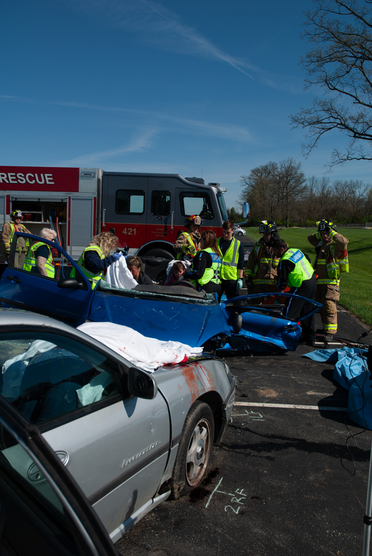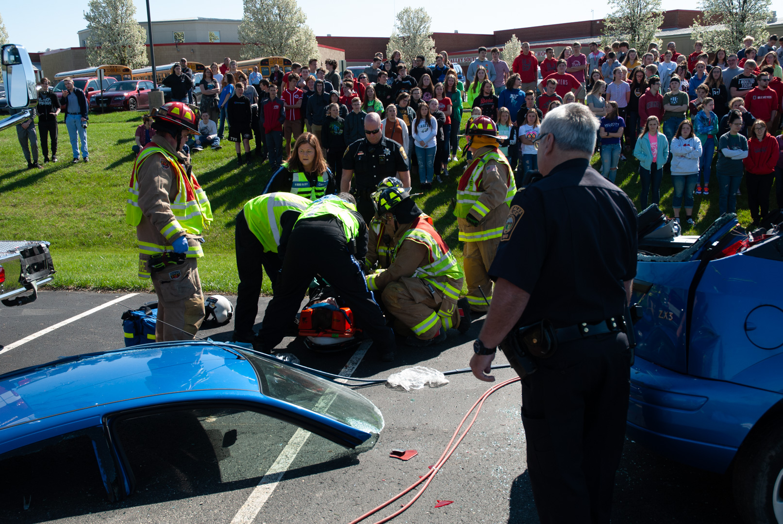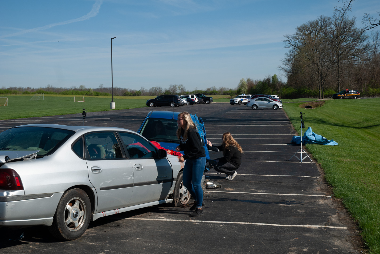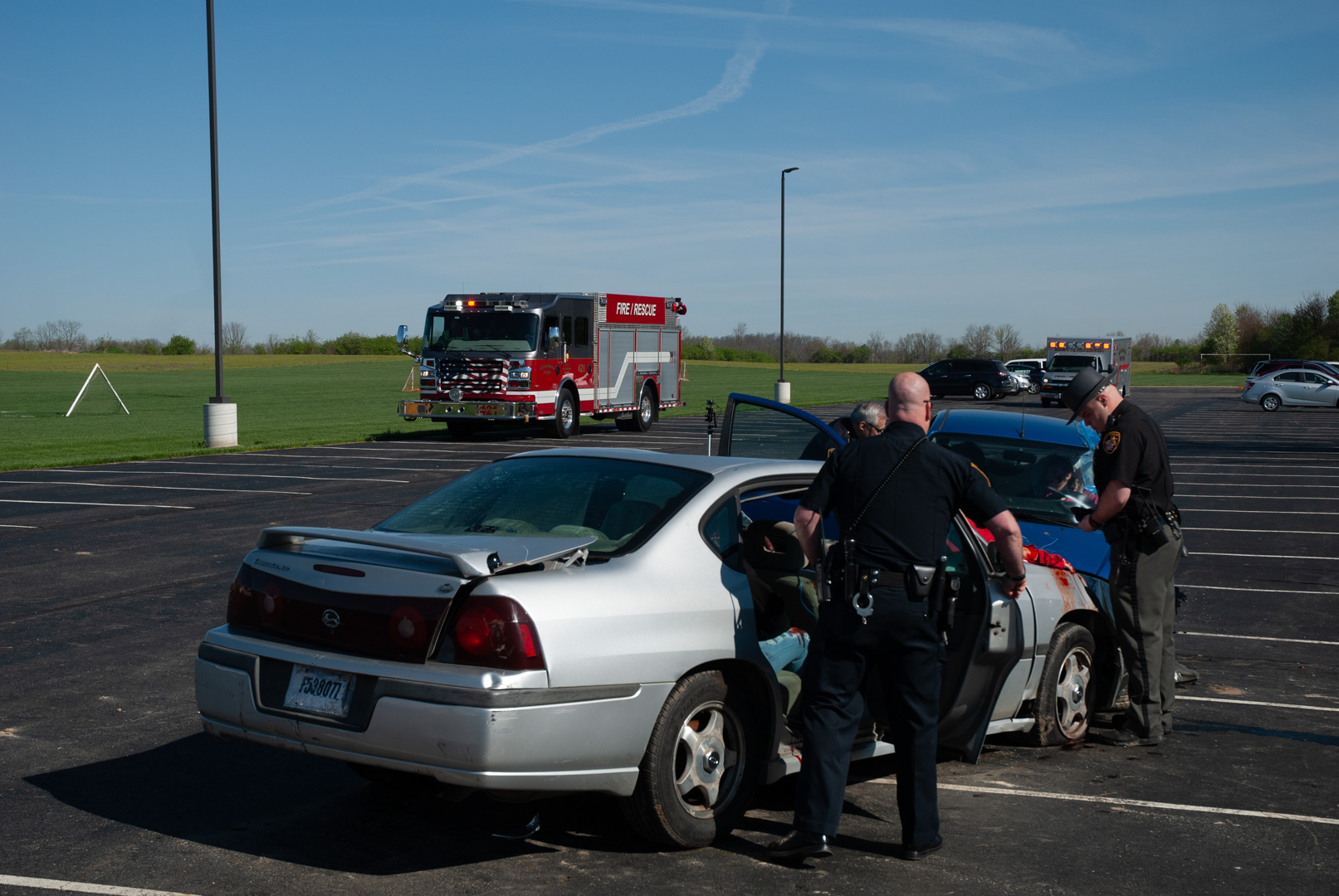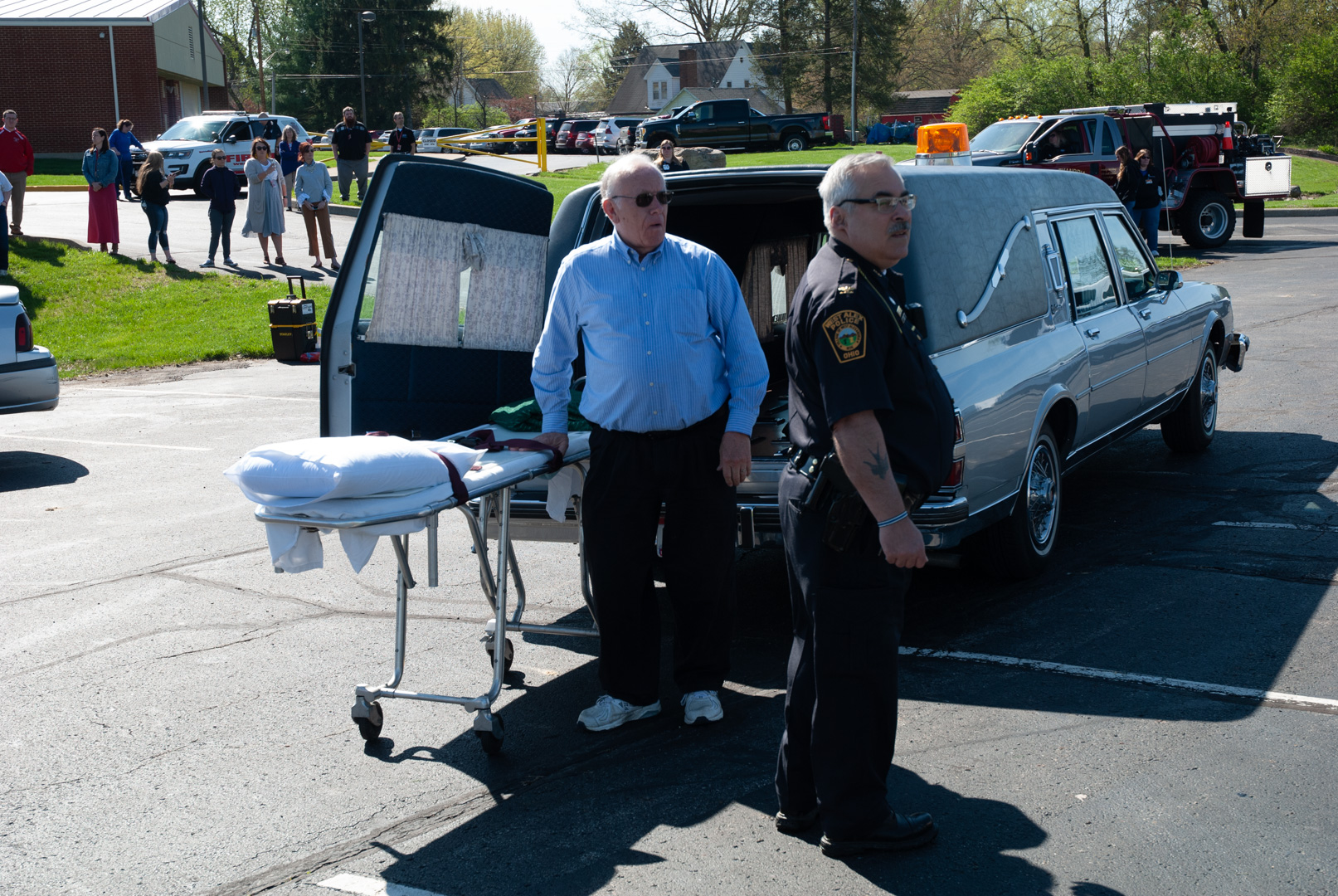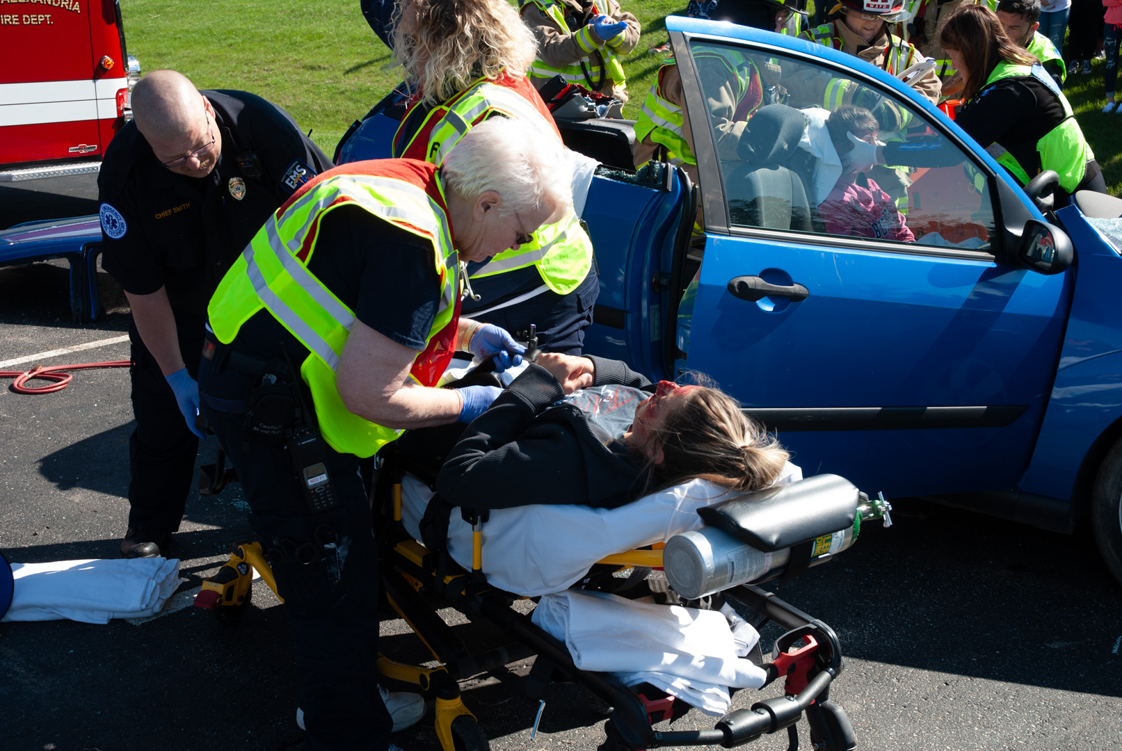 Members of West Alexandria Fire and EMS, joined by Careflight, put on a "mock crash" for the students of Twin Valley High School to try to deter any prom night drinking and driving. April 22, 2019