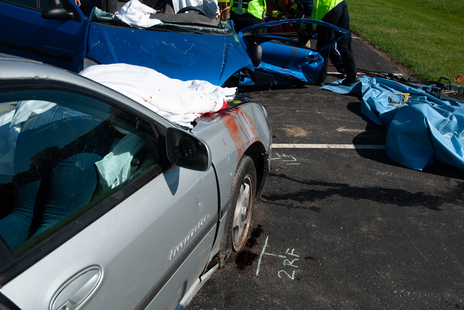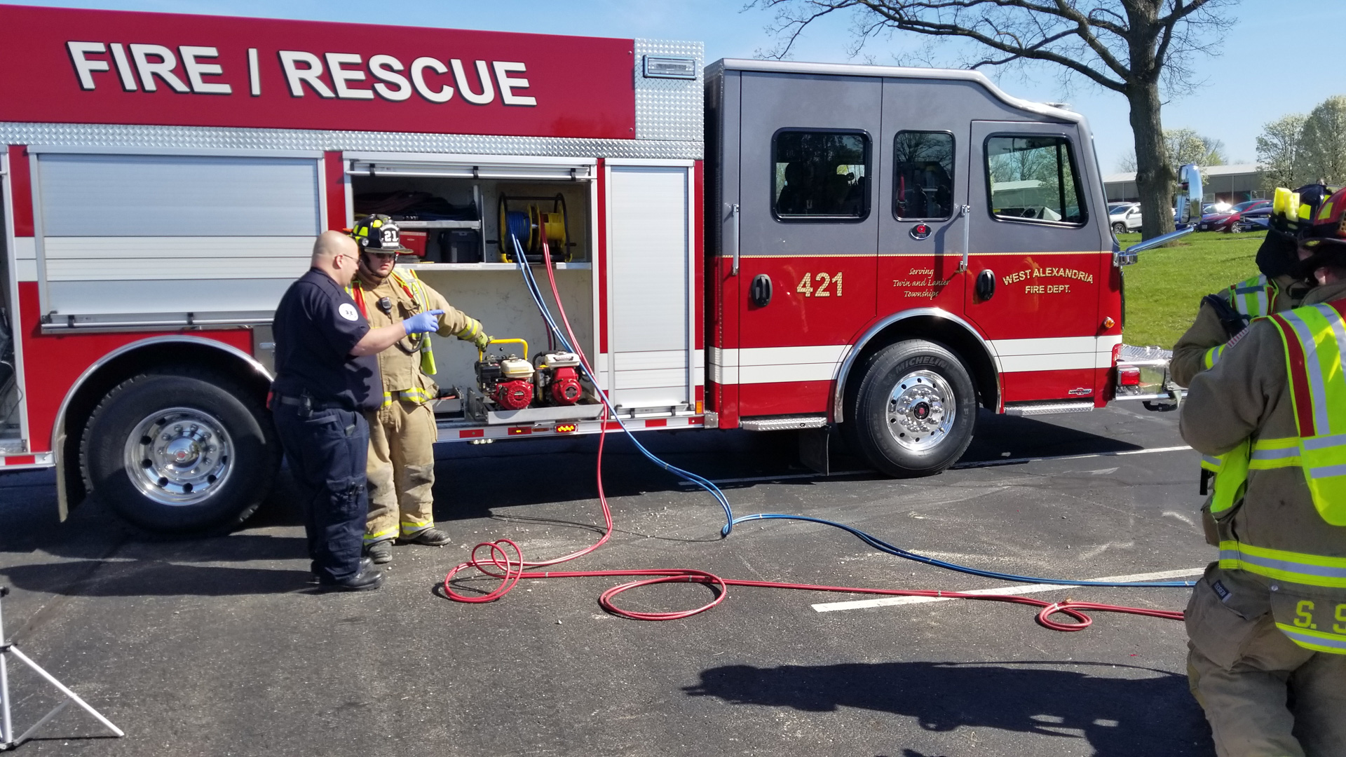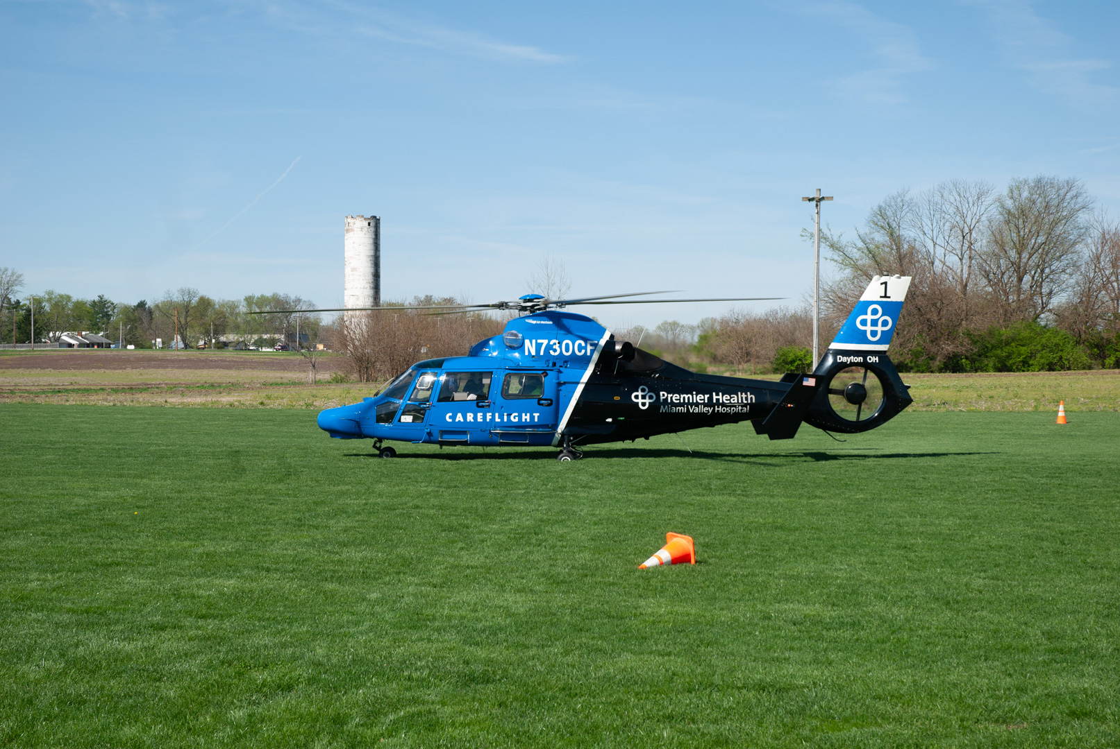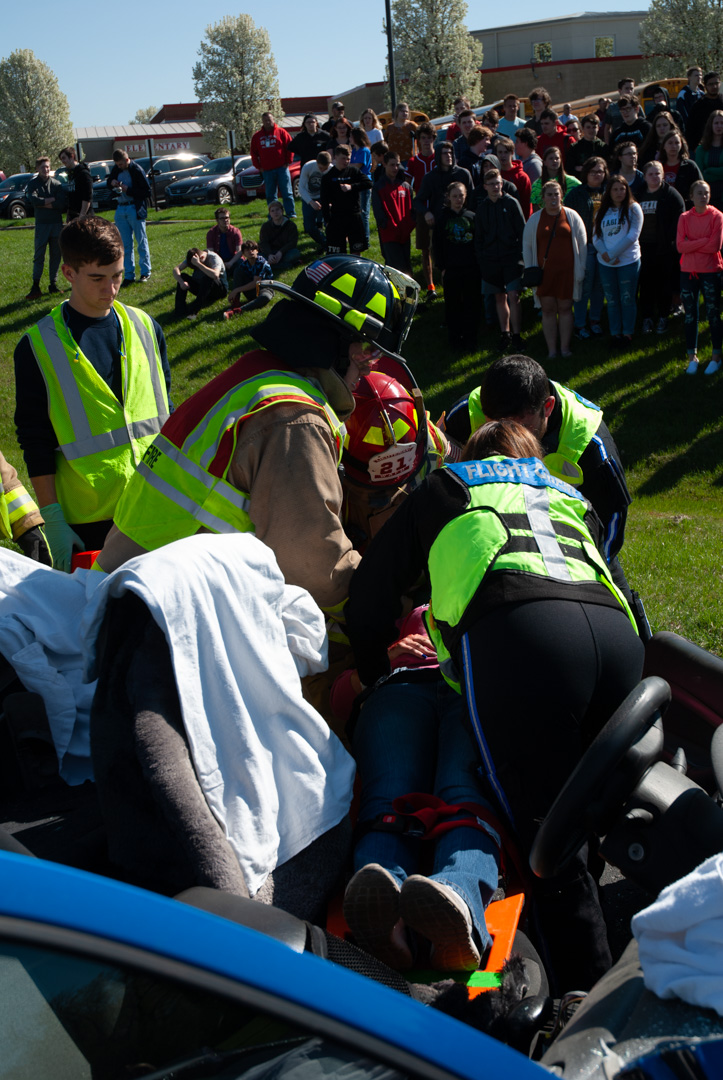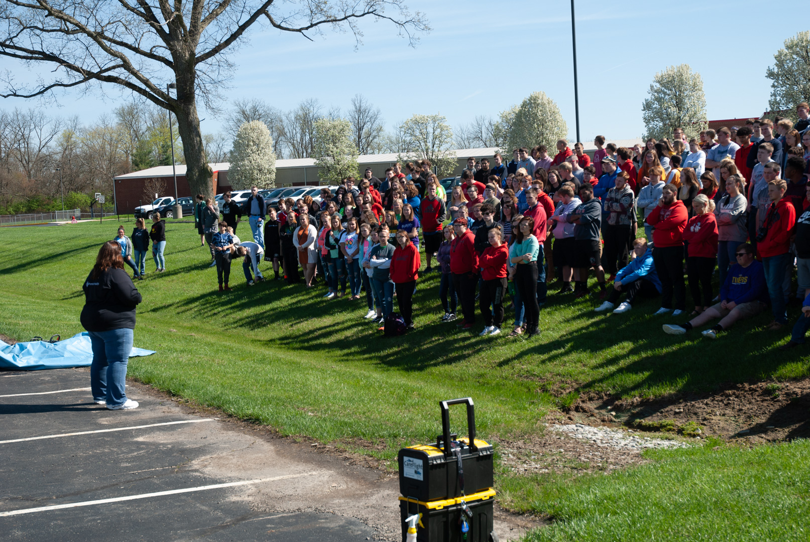 Members of West Alexandria Fire and EMS, joined by Careflight, put on a "mock crash" for the students of Twin Valley High School to try to deter any prom night drinking and driving. April 22, 2019