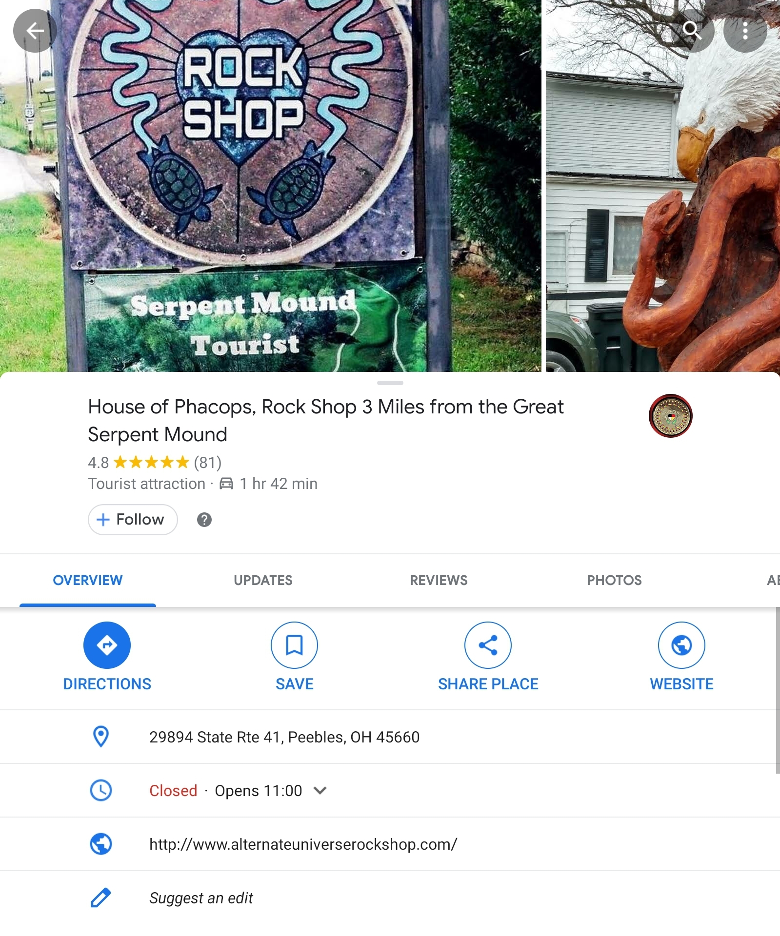 Interesting rock shop near Serpent Mound