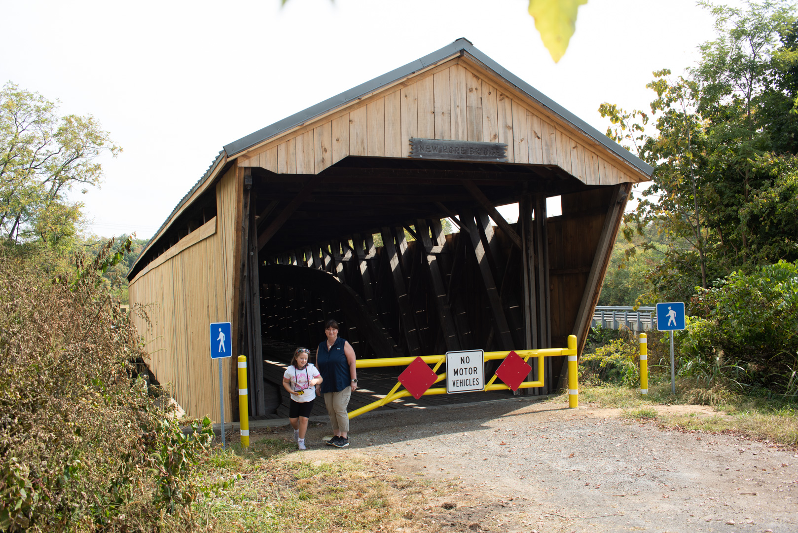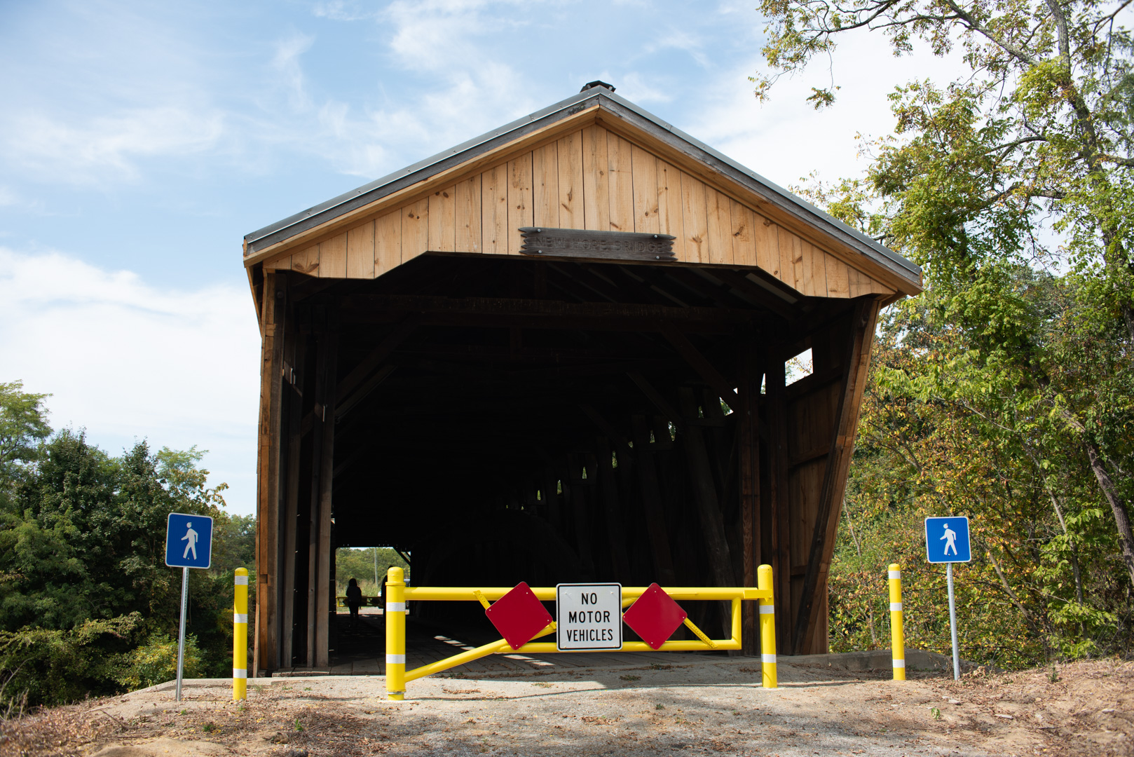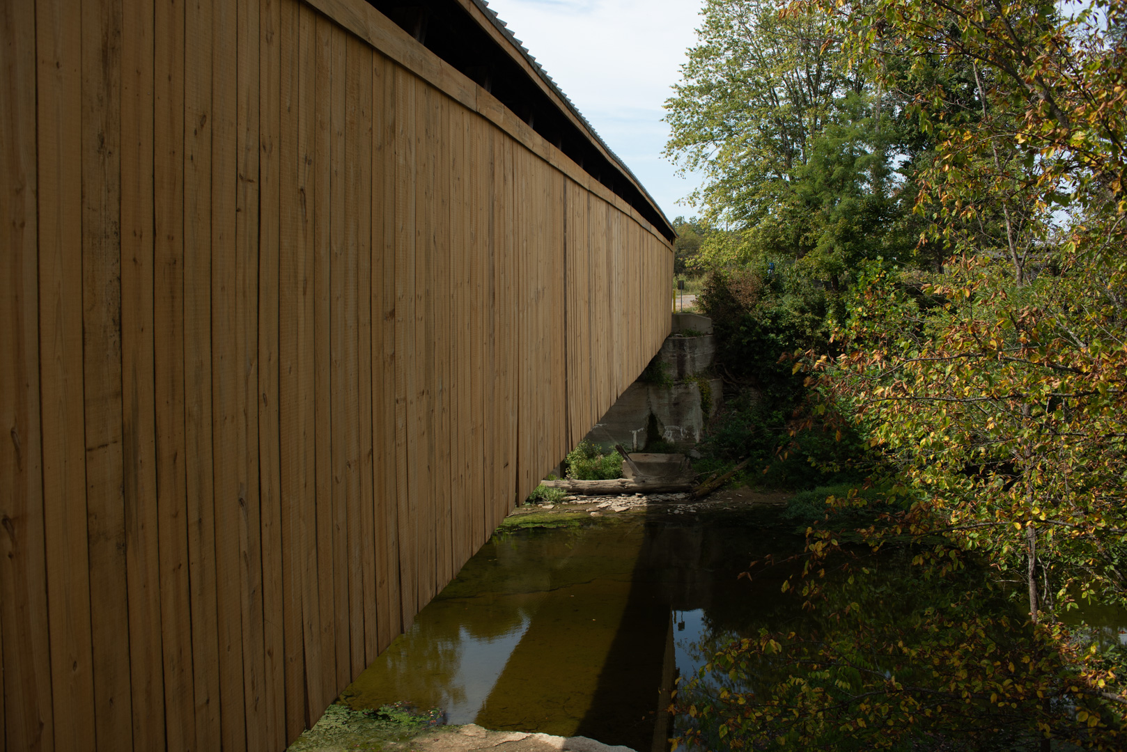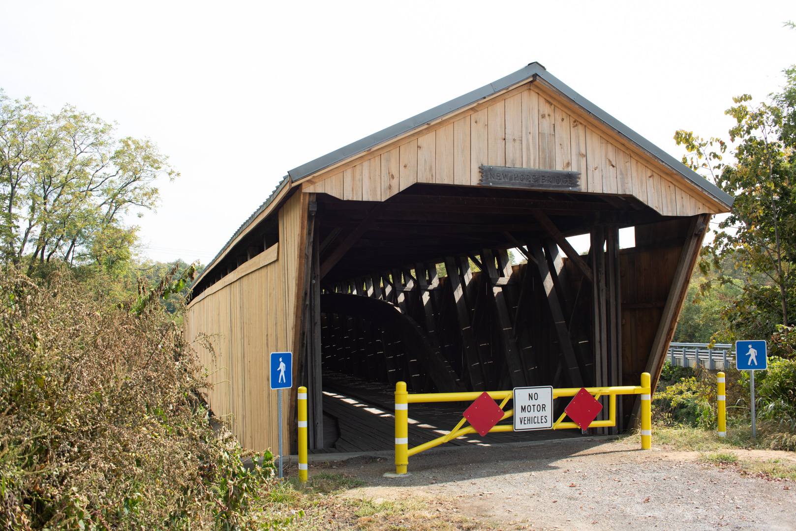 A historic covered bridge near Georgetown Ohio. The Bethel-New Hope Bridge is the longest covered bridge still existence in Ohio at 188 feet 6 inches. It was built in 1878 and bypassed 100 years later, in 1978. This bridge replaced an older one in 1878. There have been major renovations in 1902, 1932, and in 1977. Spans White Oak Creek.
