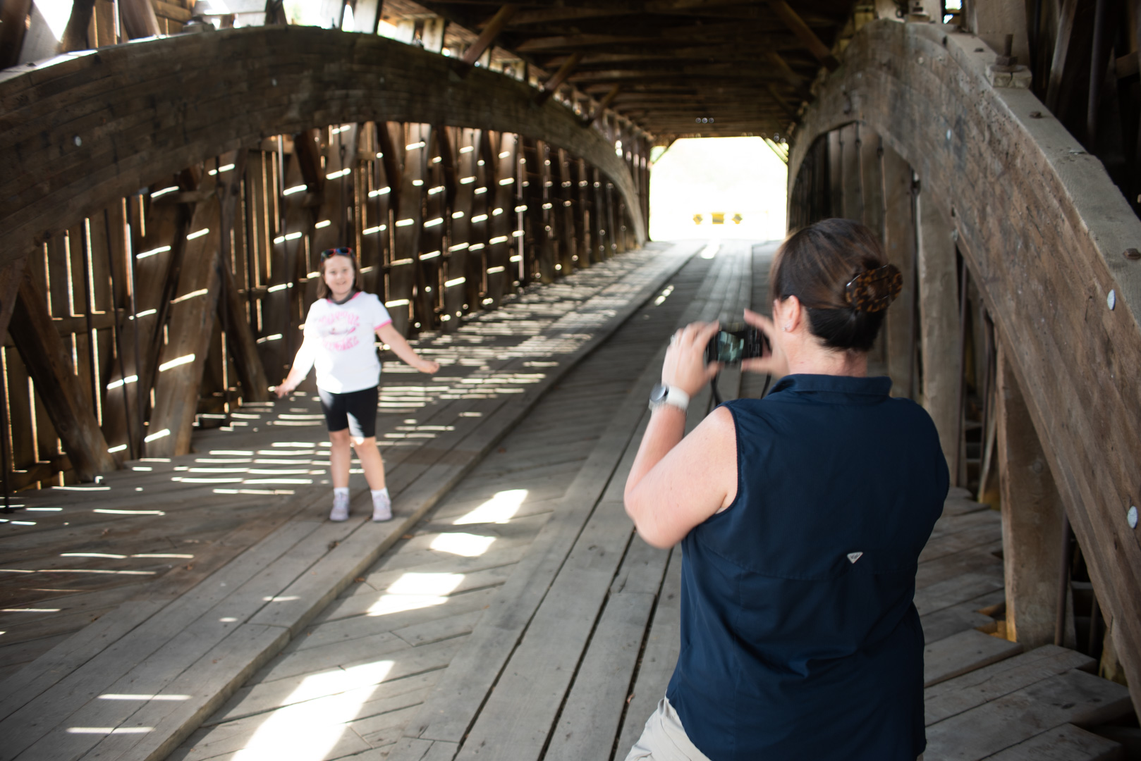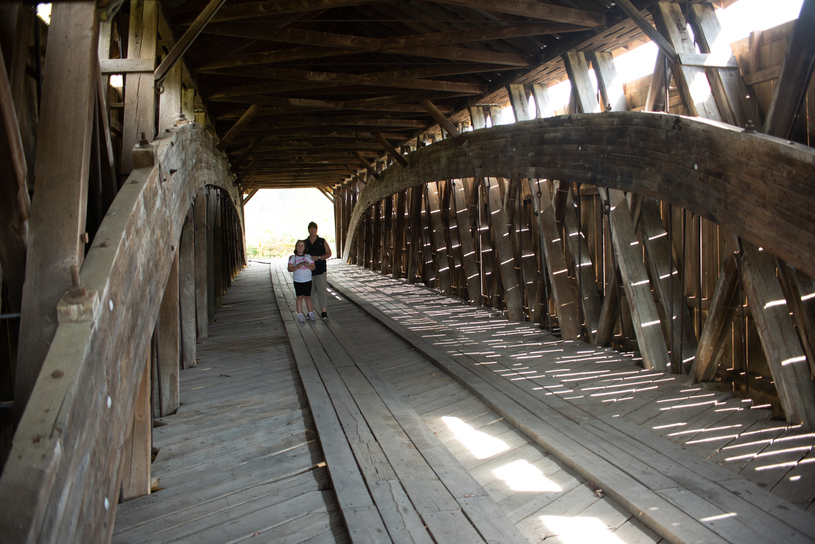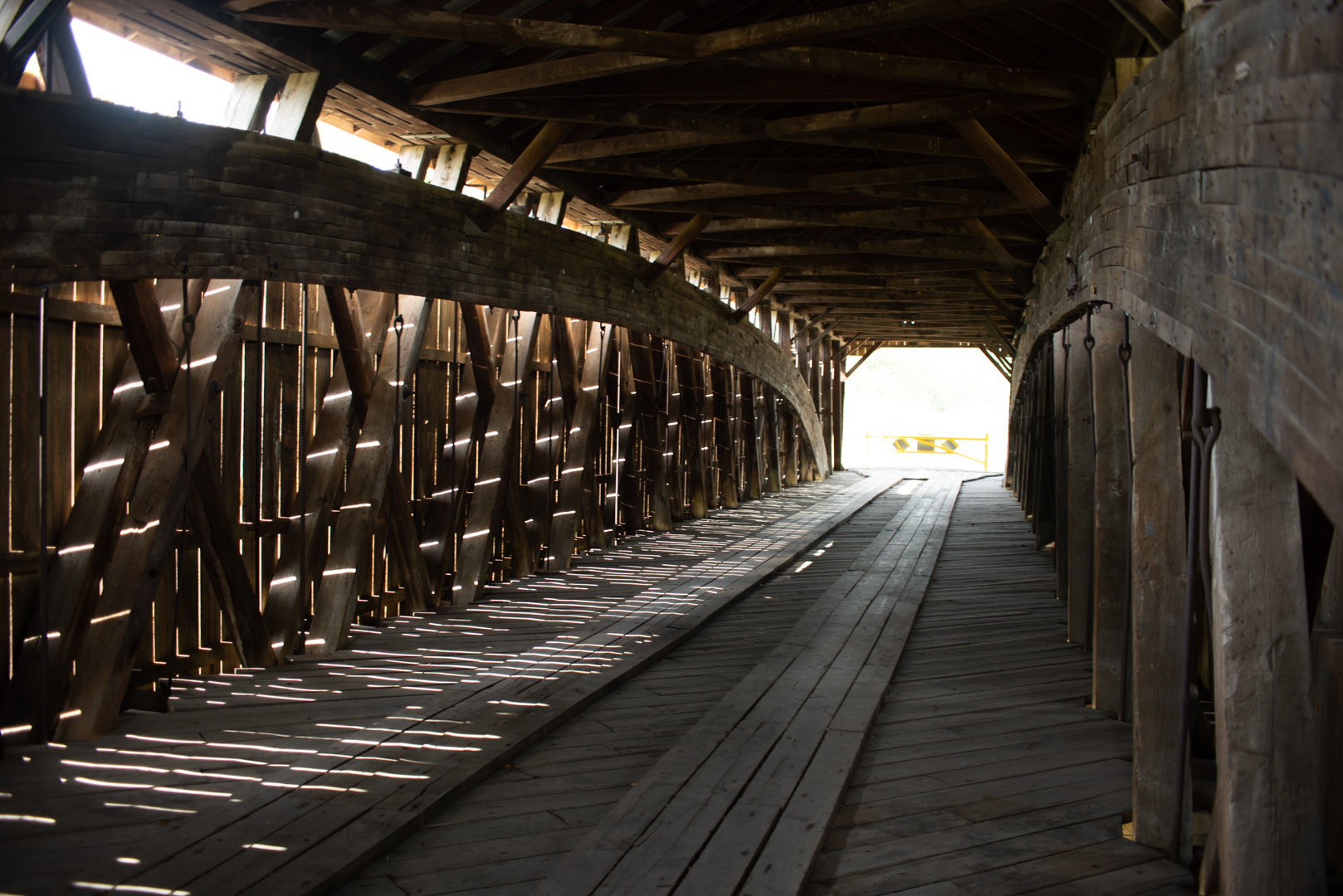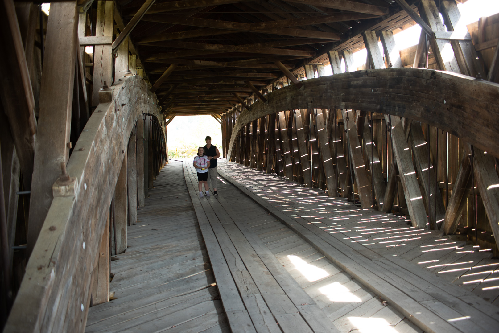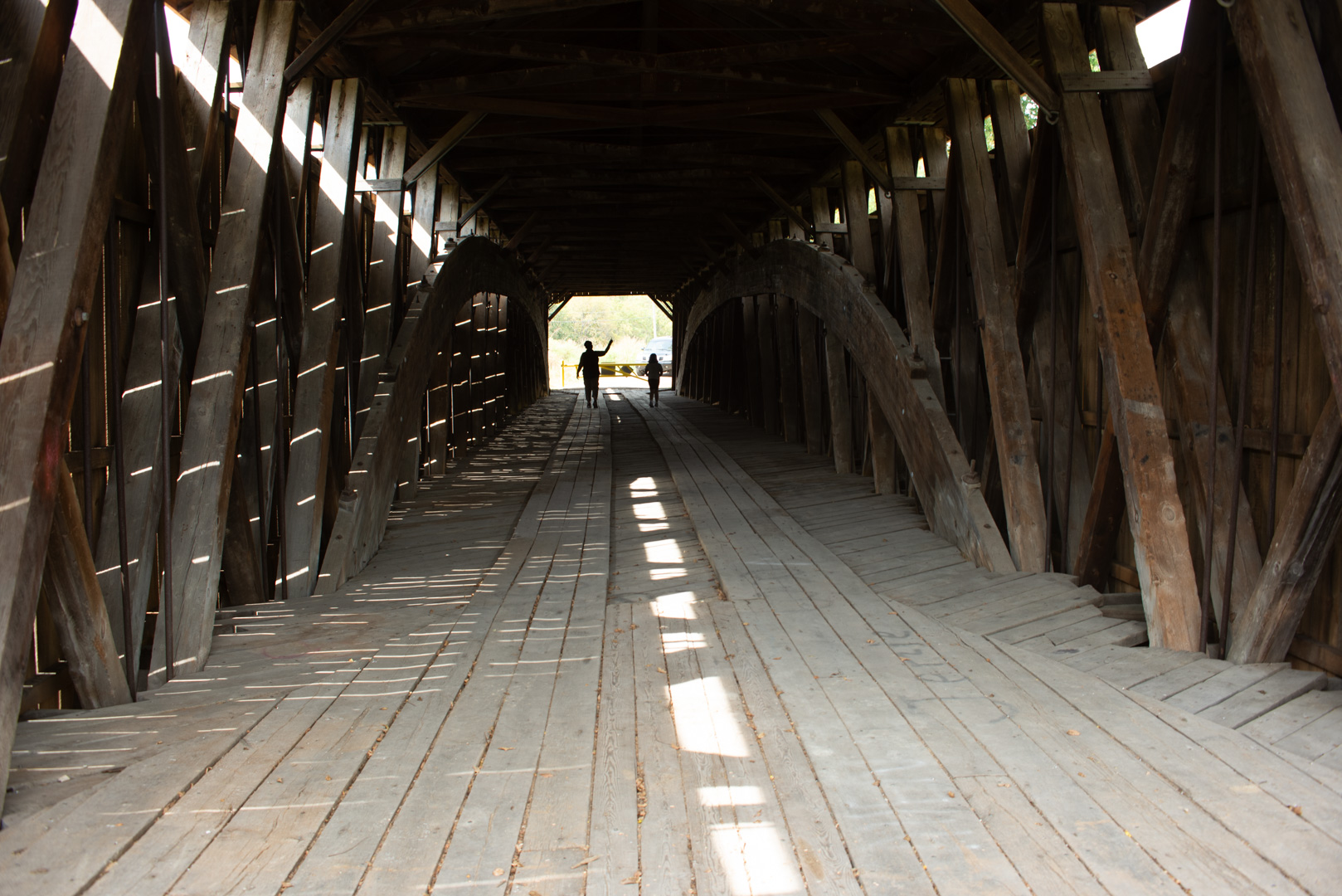 A historic covered bridge near Georgetown Ohio. The Bethel-New Hope Bridge is the longest covered bridge still existence in Ohio at 188 feet 6 inches. It was built in 1878 and bypassed 100 years later, in 1978. This bridge replaced an older one in 1878. There have been major renovations in 1902, 1932, and in 1977. Spans White Oak Creek.