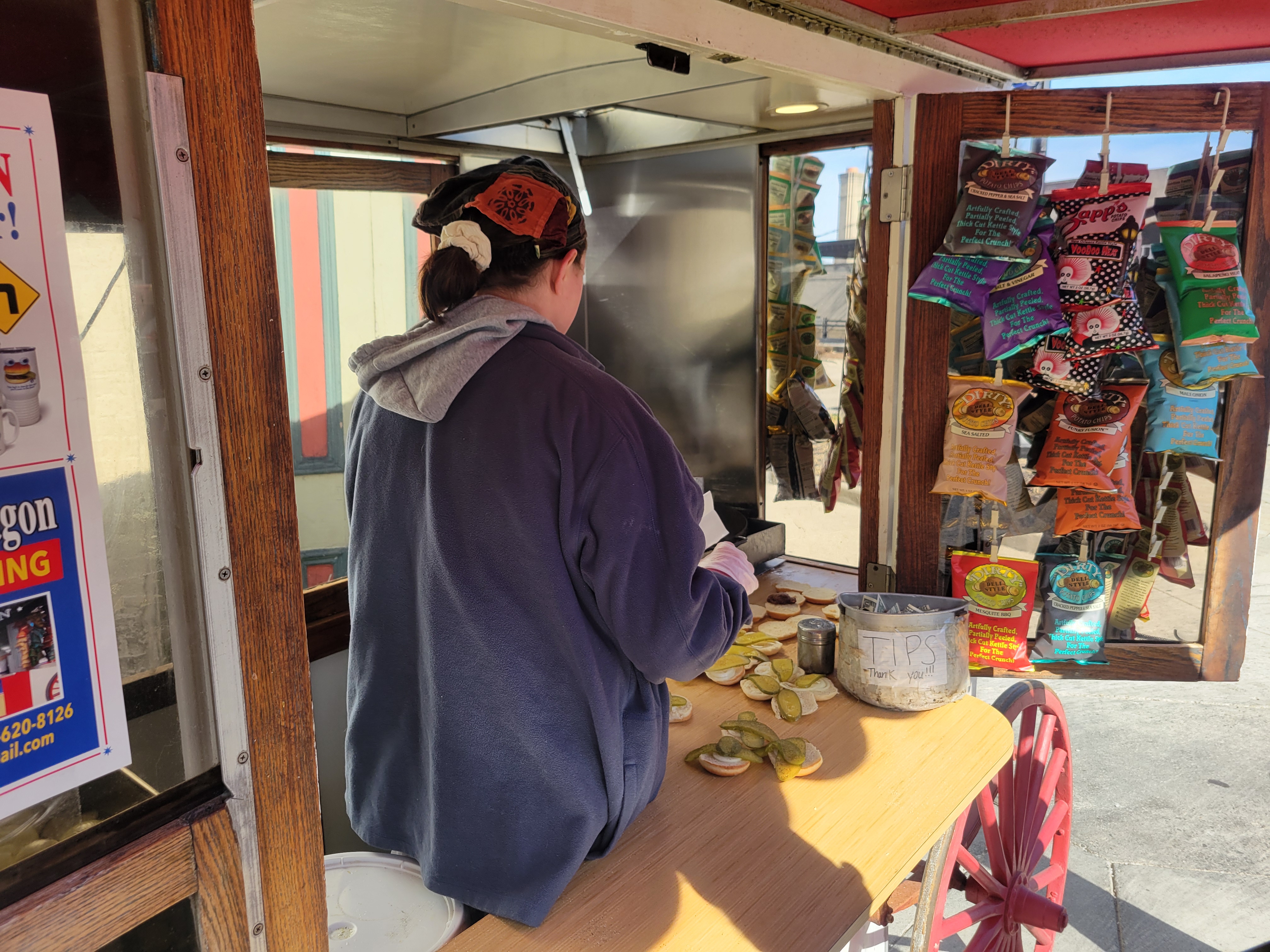 It's always fun to stop by the Hamburger Wagon when you're in the area and pick up a sack of their signature burgers. Cash only!