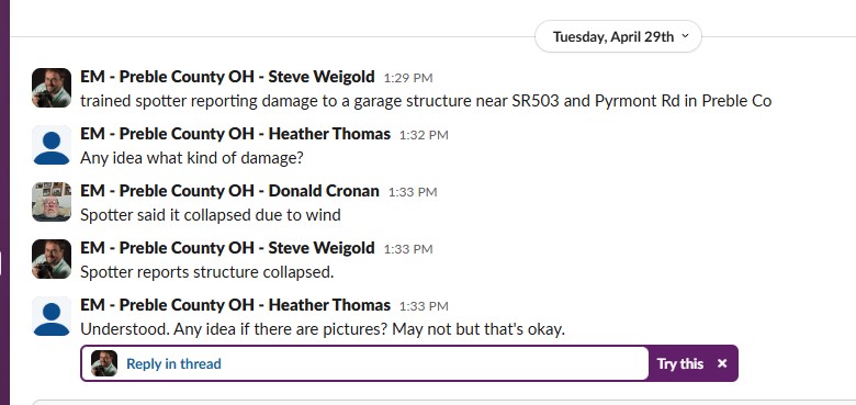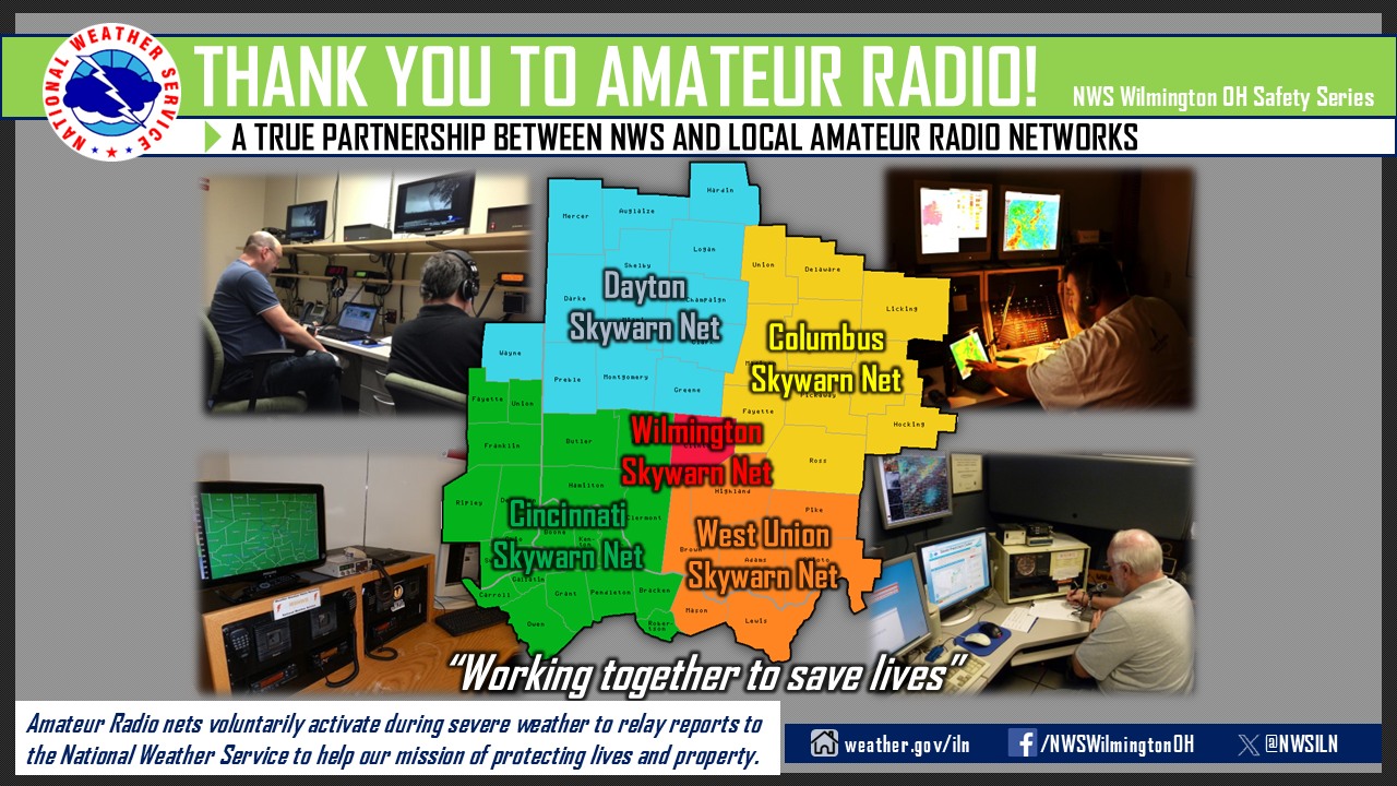 As part of my many Amateur Radio interests, I participate extensively in local SKYWARN operations for both Preble County and Warren County. Unfortunately Butler County doesn't have much in the way of active SKYWARN operations, but that's something I'm hoping to help improve.