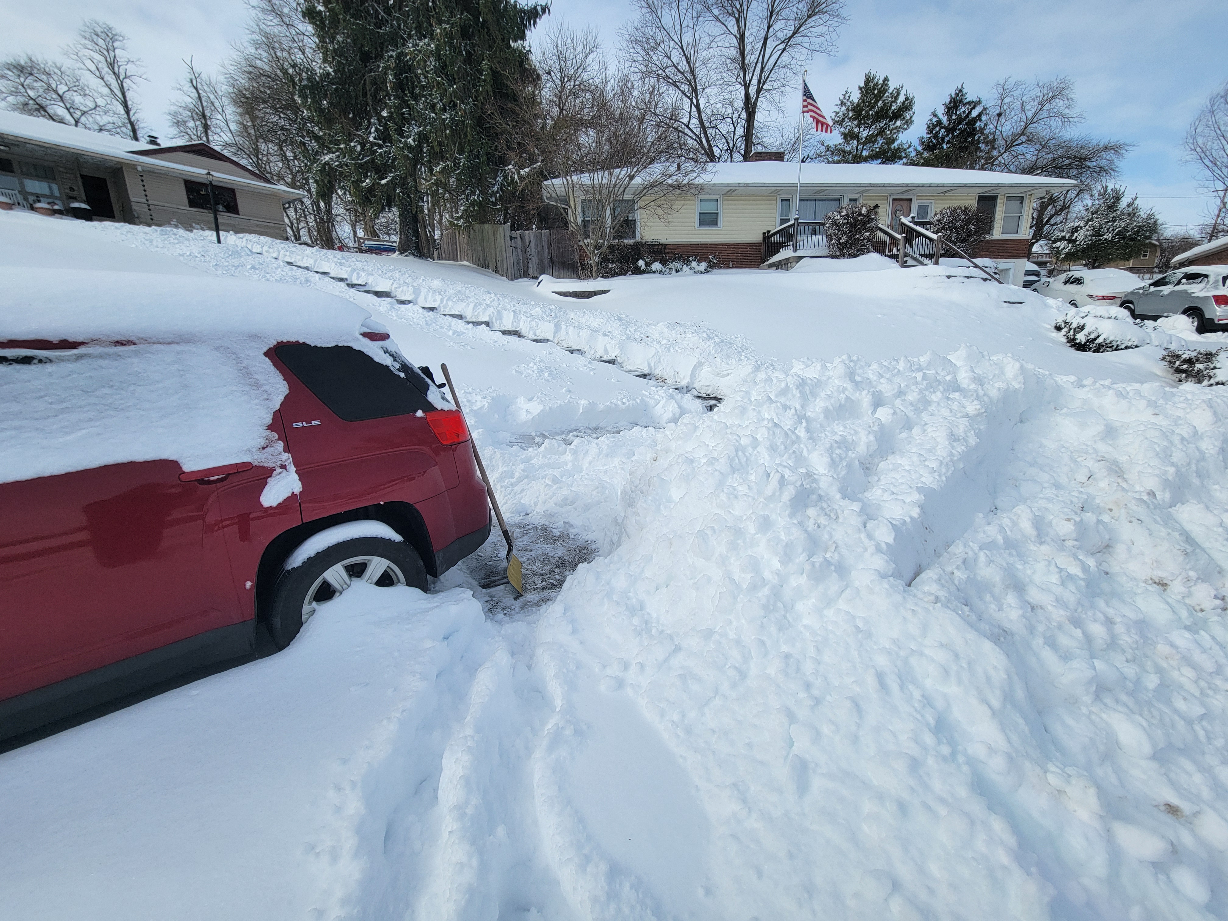 Thanks to the city for piling the entire cul-de-sac's snow in front of my driveway, I have a massive five foot high pile of snow to move before I can think about getting vehicles down the hill. Anyone got a bobcat I can borrow? Currently taking spells shoveling it into the yard by hand.